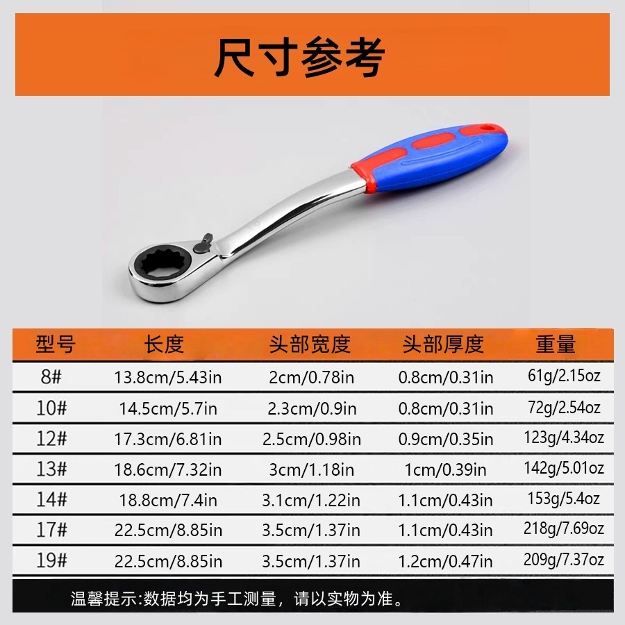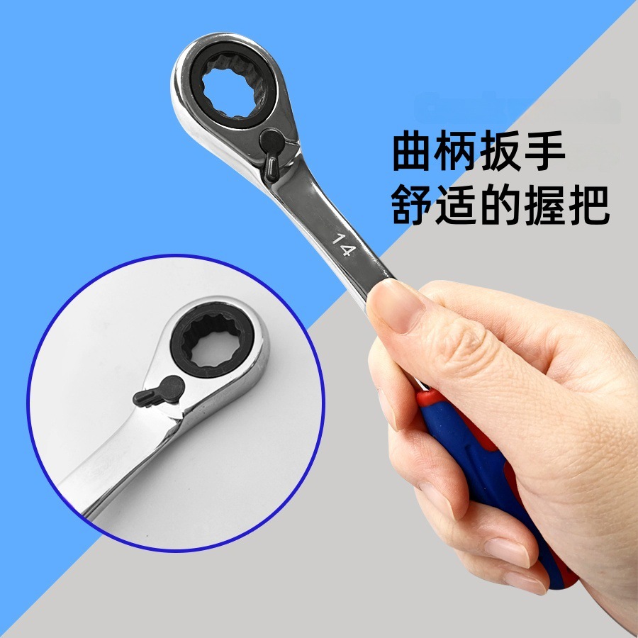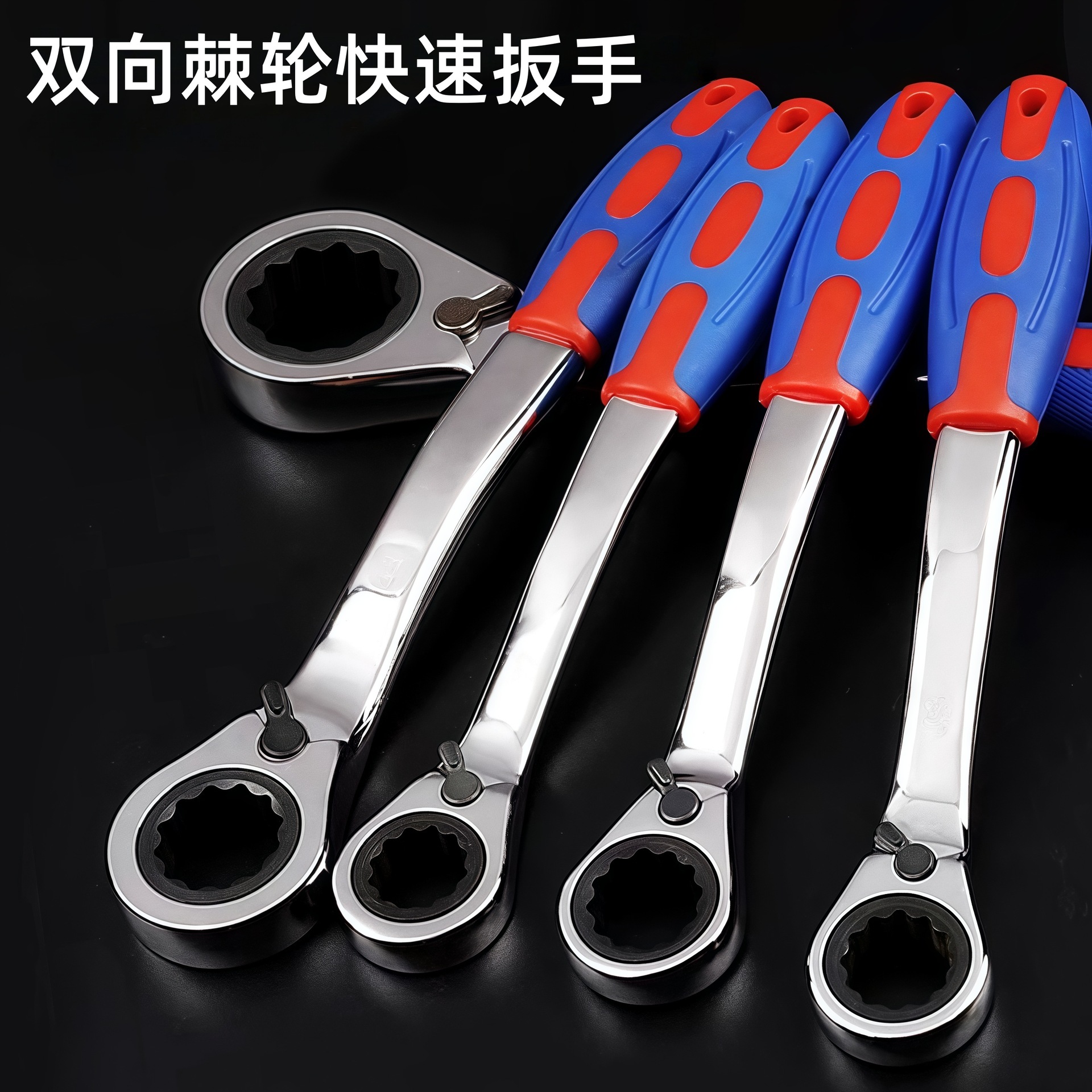 Llave de trinquete de doble propósito con mango de plástico, llave de trinquete de múltiples especificaciones, herramientas de ferretería para el hogar al por mayor.