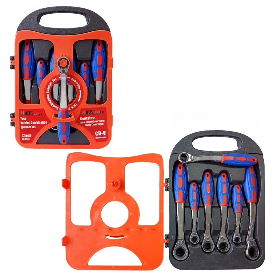 Llave de trinquete rápida de 72 dientes de acero al cromo vanadio Llave torx abierta de doble uso Llave automática Juego de 7 piezas en caja de plástico