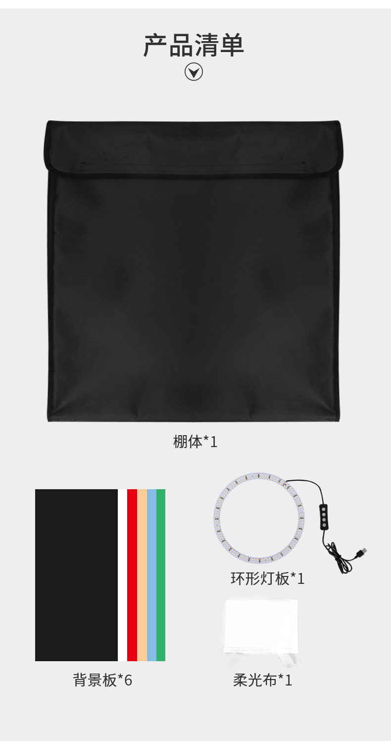 | Lista de embalaje | Tablero de luz LED de estudio Tablero de fondo de PVC |