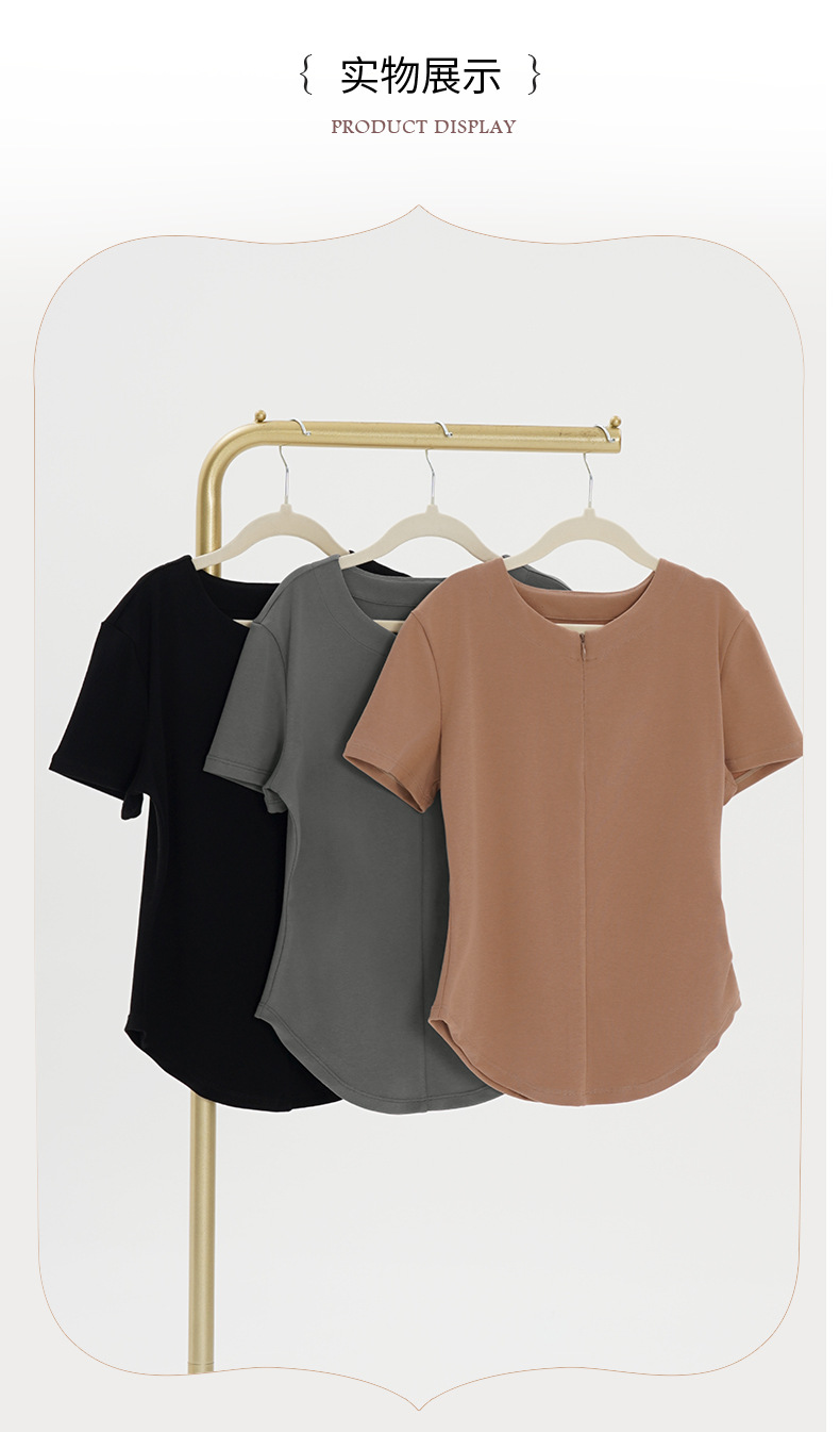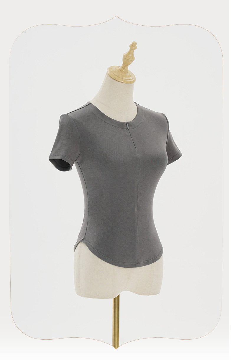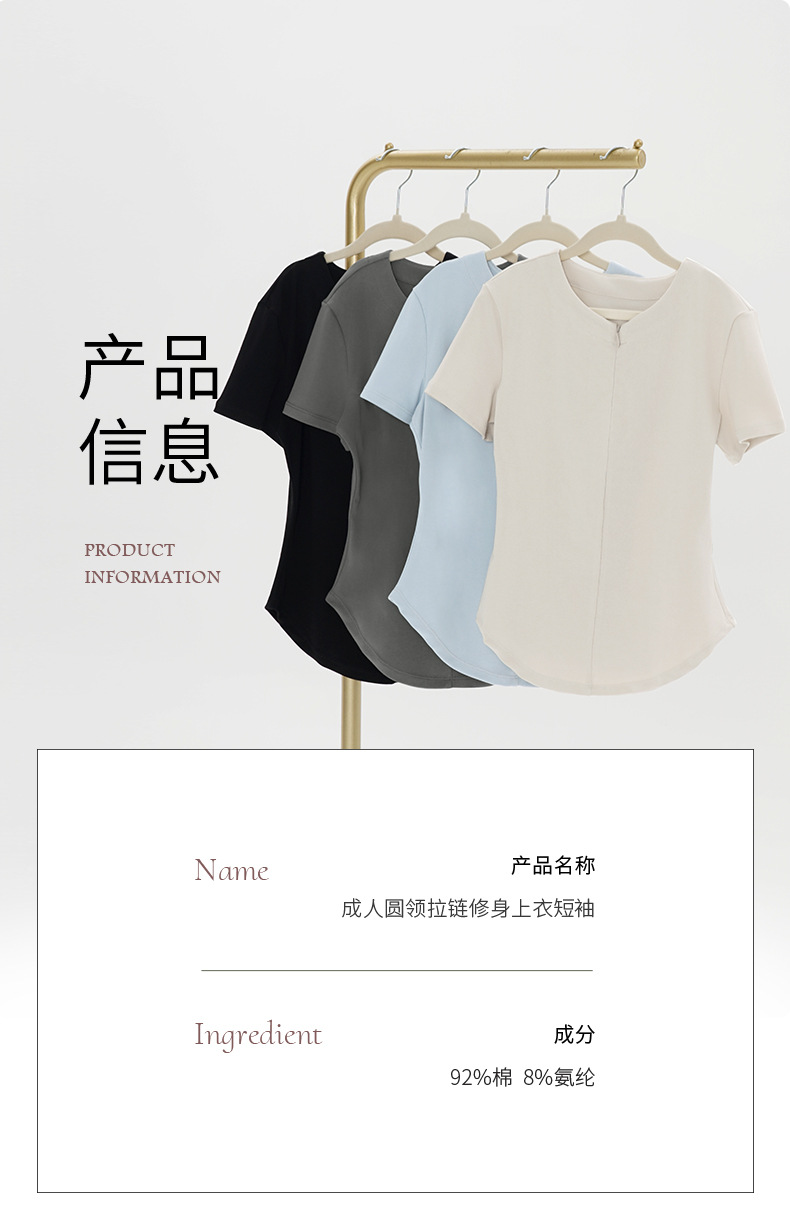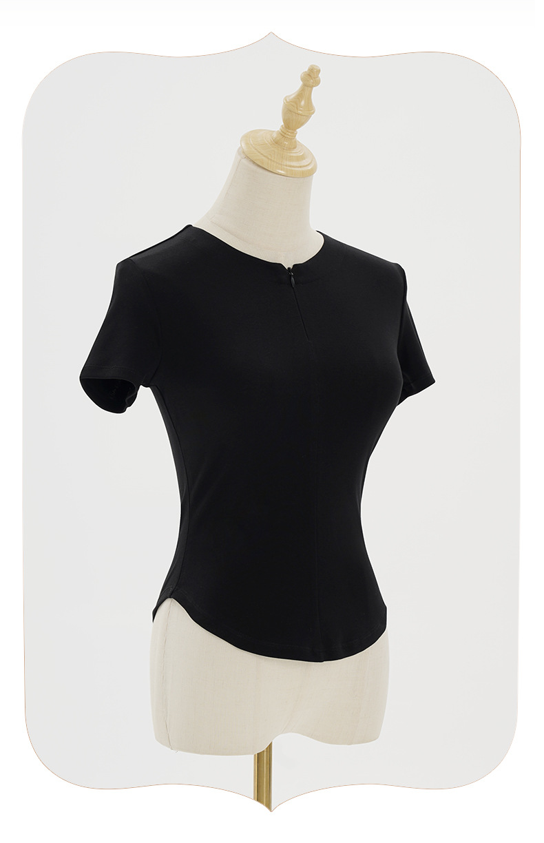 Top delgado con cuello redondo y cremallera para adultos de manga corta