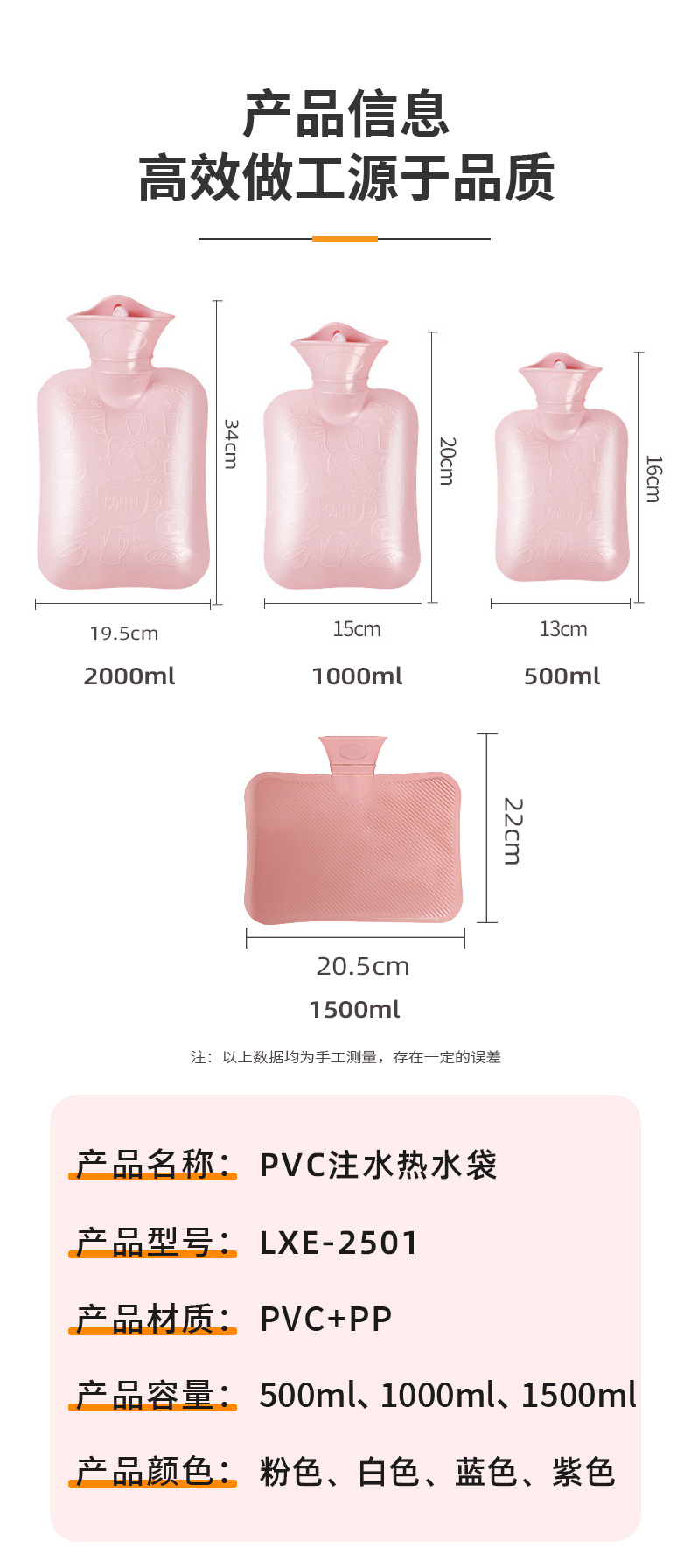 | Categoría de producto | Bolsa de agua caliente de inyección de agua |