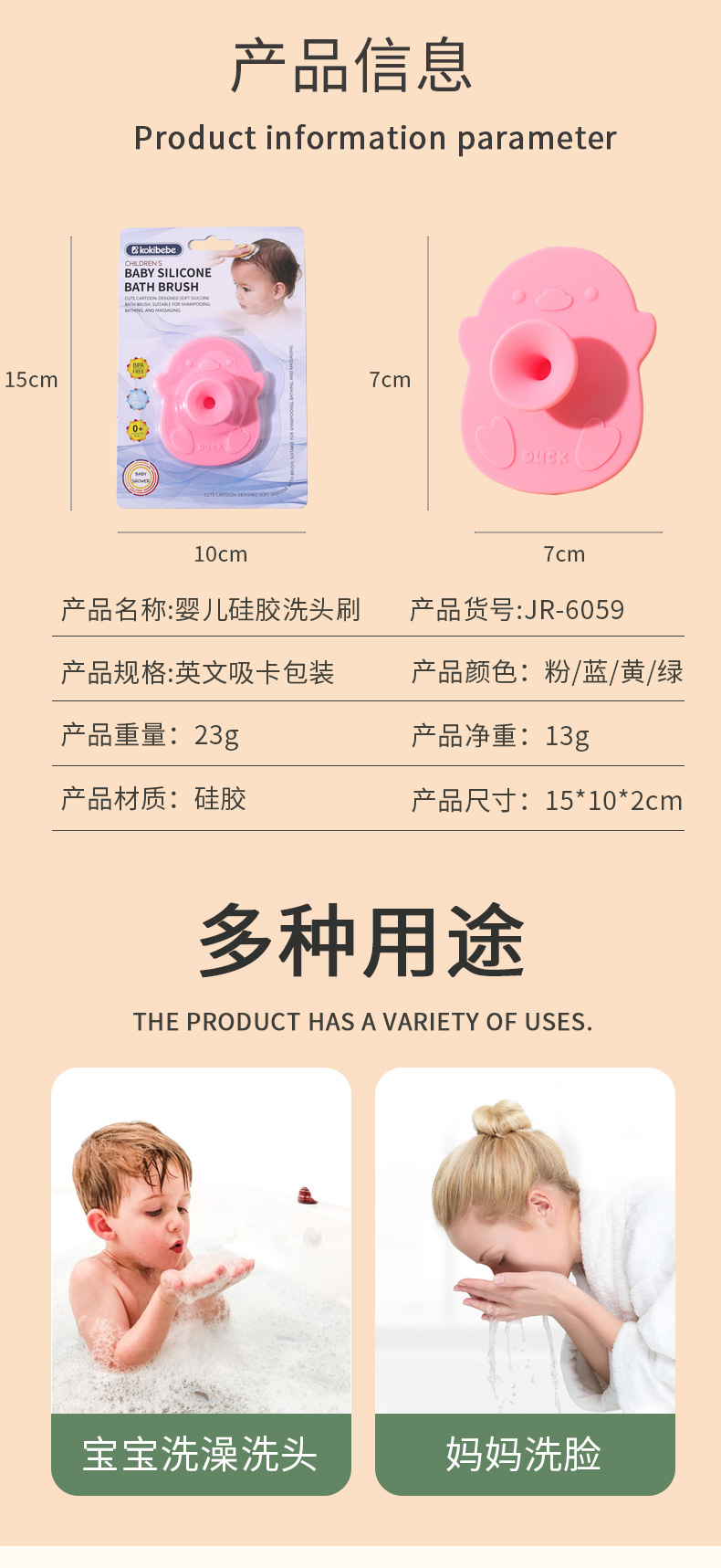 【重量】:整套含包装:23g 小鸭子洗头刷13g