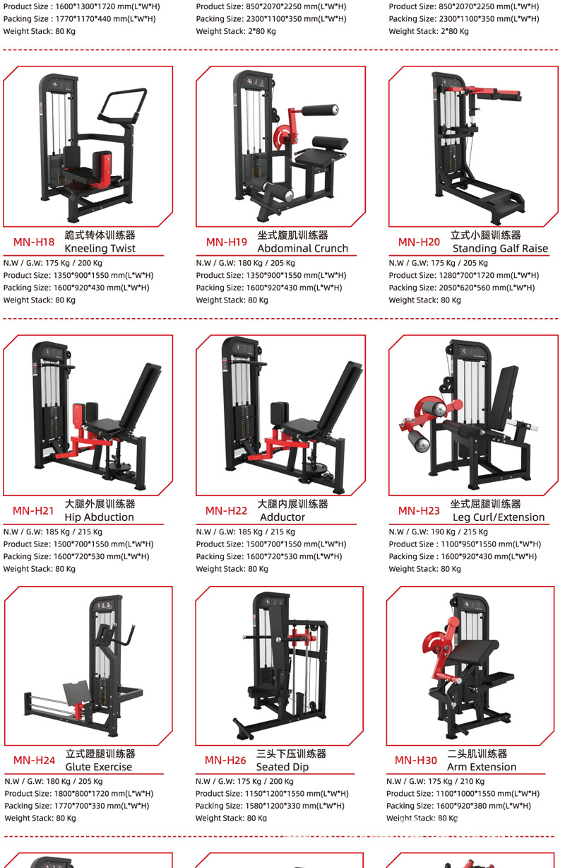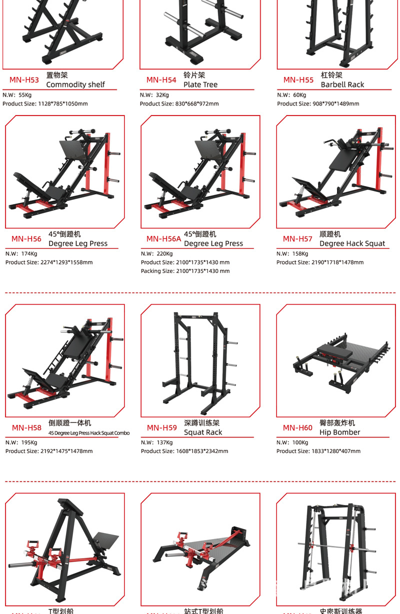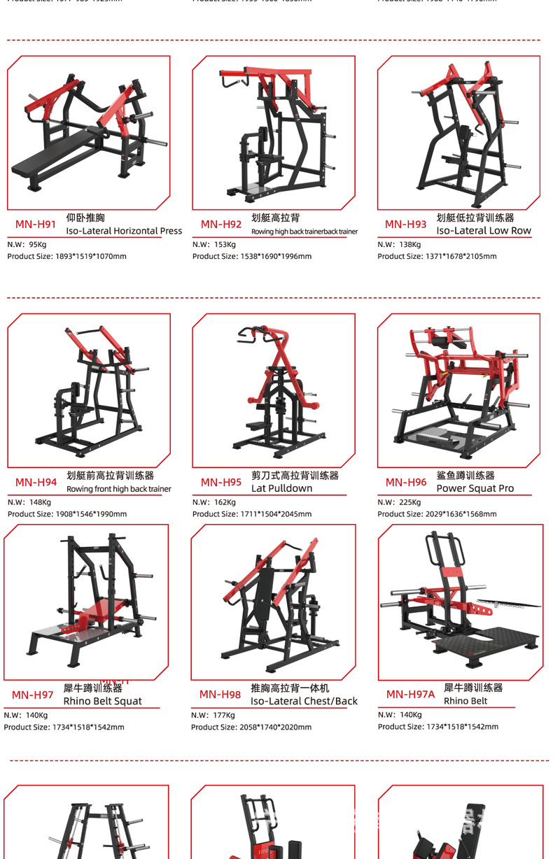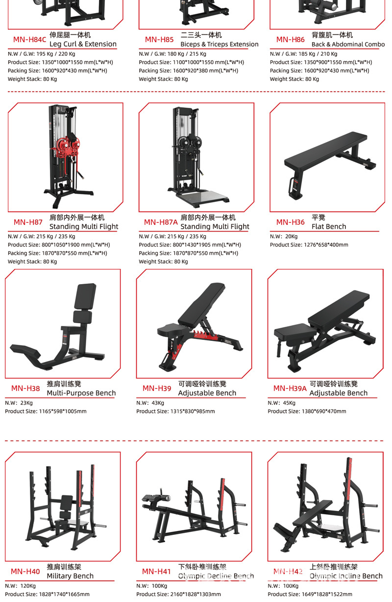 | Especificaciones | Dentro y fuera del muslo,Piernas extendidas,Tijeras tirando de la espalda,Pecho de empuje de torre,Abrazadera lateral,Levantamiento de hombros sentado,Pecho de mariposa,Remo tirando de la espalda,Alto y bajo tirando de la espalda,Remo tipo T,Horizonte plano,Taburete con mancuernas ajustable,Soporte de campana,Personalización de otros equipos |