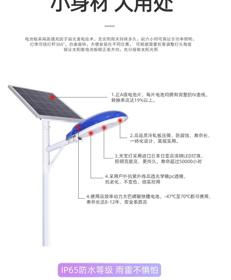 | Clasificación de especificaciones | 1 metro poste de luz de calle,Instalación de pared de farola solar,1 m farola solar (juego completo),Farola solar de 3 m (juego completo),Farola solar de 4 m (juego completo),5 m-farola solar (juego completo),Farola solar de 6 m (juego completo),5 m farola solar (juego completo),6 metros de farola solar (juego completo),Farola solar de 7 m (juego completo),Farola solar de 8 m (juego completo),9 m farola solar (juego completo) |
