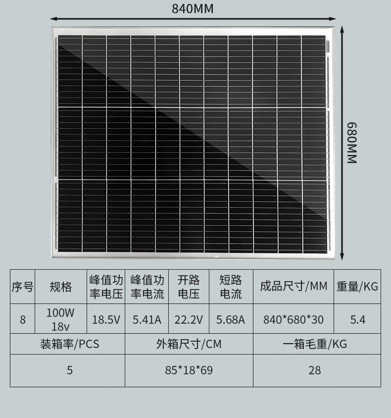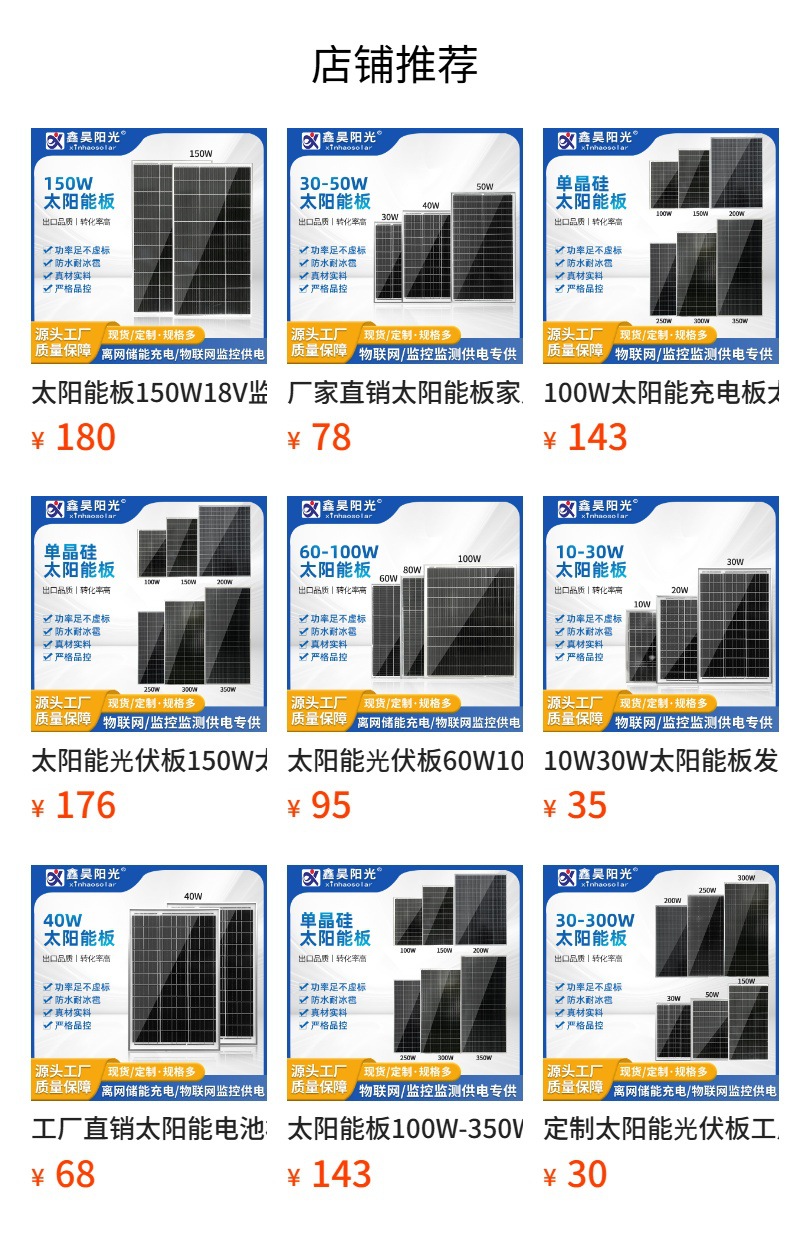 Panel solar de alta eficiencia de rejilla densa 100w18v placa de carga de potencia completa placa del sistema de generación de energía del módulo fotovoltaico doméstico