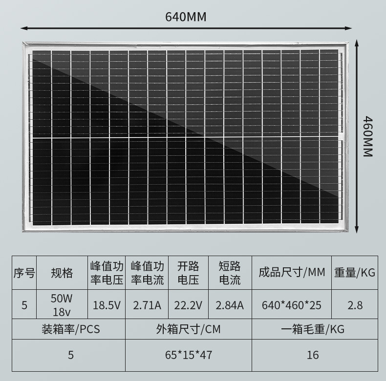 Panel solar personalizado de 50w panel solar de silicio policristalino monocristalino 18v panel de carga solar de aluminio laminado