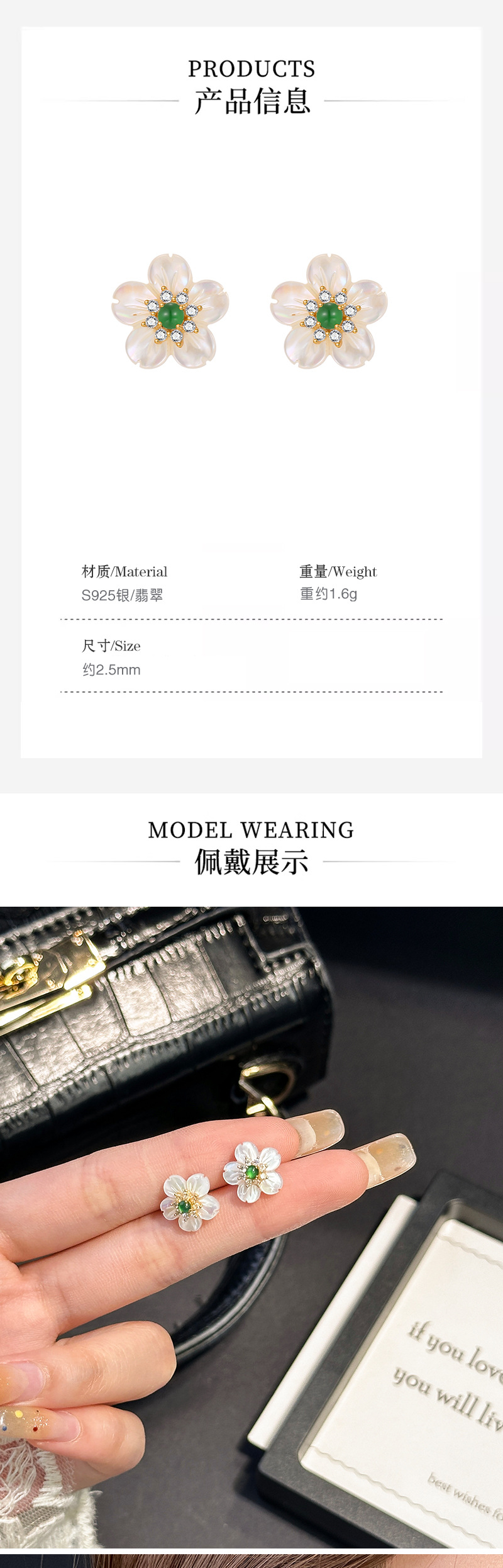 | Colores | Un par de pendientes de plata esterlina fritillaria verde esmeralda |