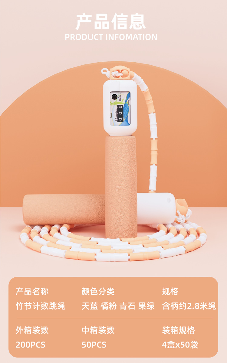 6105 Entrenamiento de prueba física Saltar cuerda Entrenamiento de examen de ingreso a la escuela secundaria Saltar cuerda Los estudiantes saltan la cuerda La longitud se puede ajustar para contar la cuerda de salto de bambú