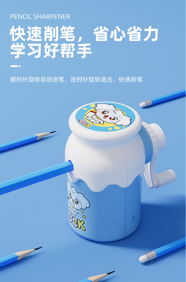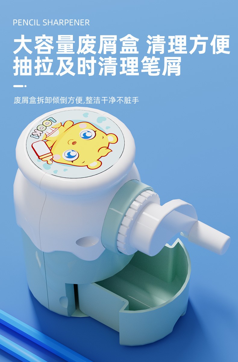 Cuchillo de acero de aleación núcleo Sacapuntas de lápiz de mano de dibujos animados Sacapuntas de lápiz de comercio electrónico de drenaje Sacapuntas de lápiz niños clásicos sacapuntas