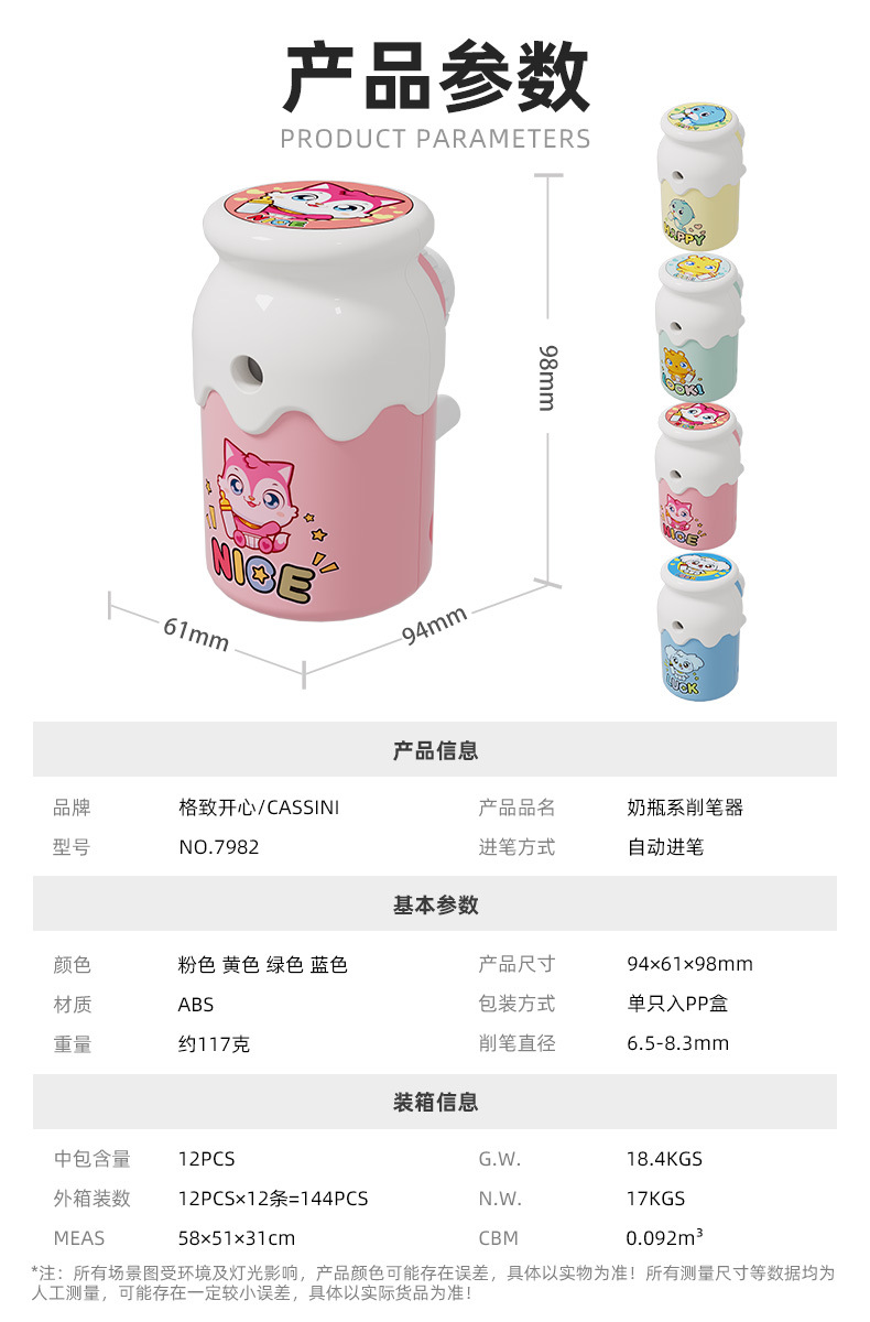 Material de papelería de aprendizaje 7982 sacapuntas de biberón sacapuntas lindo para niños sacapuntas de núcleo de acero de aleación sacapuntas