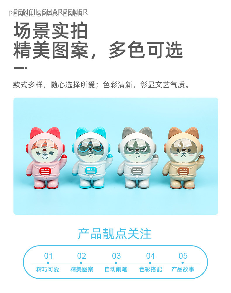 7835 espacio Meow sacapuntas automático sacapuntas estudiante manivela Sacapuntas de dibujos animados sacapuntas astronauta sacapuntas