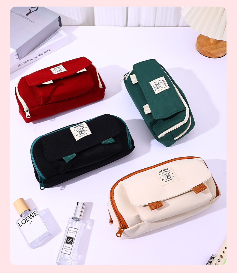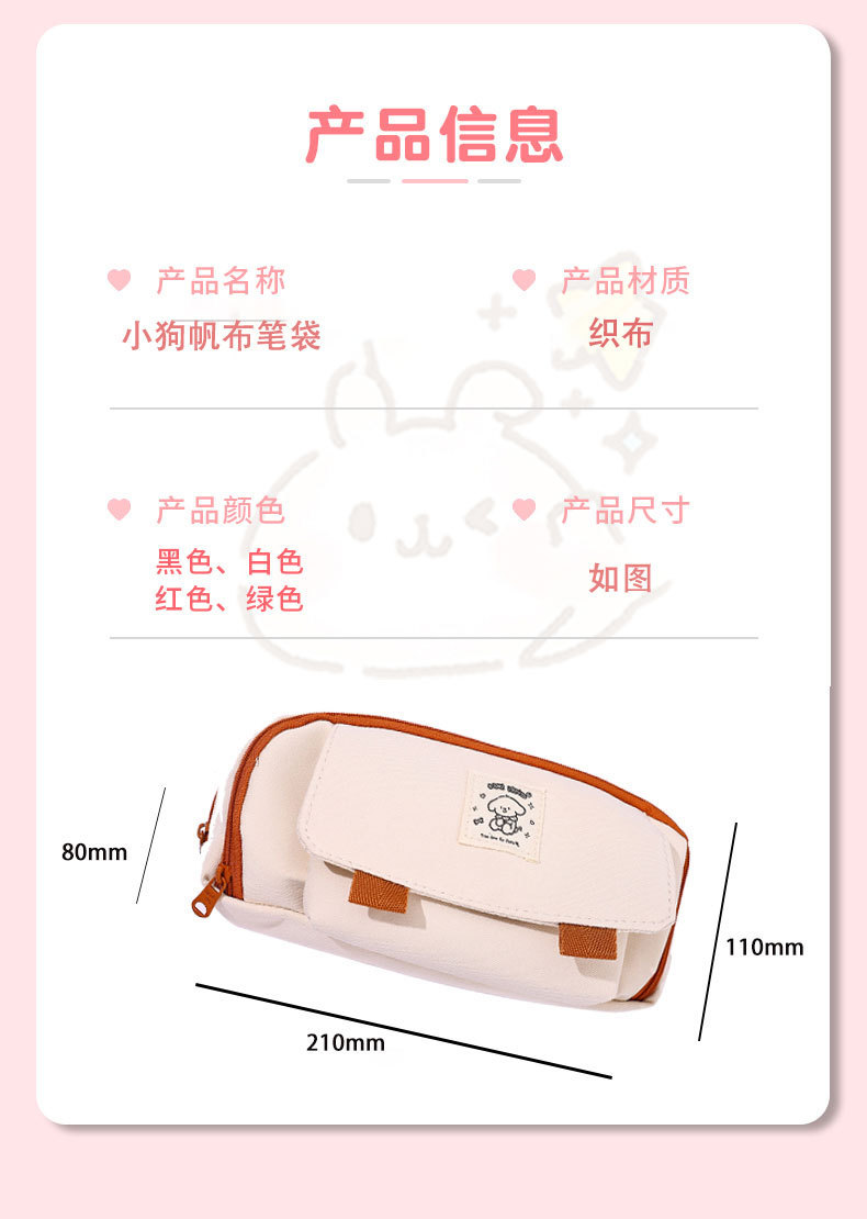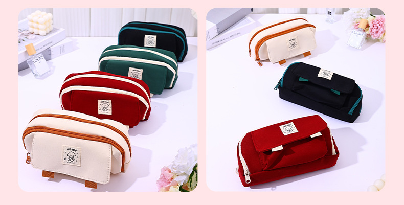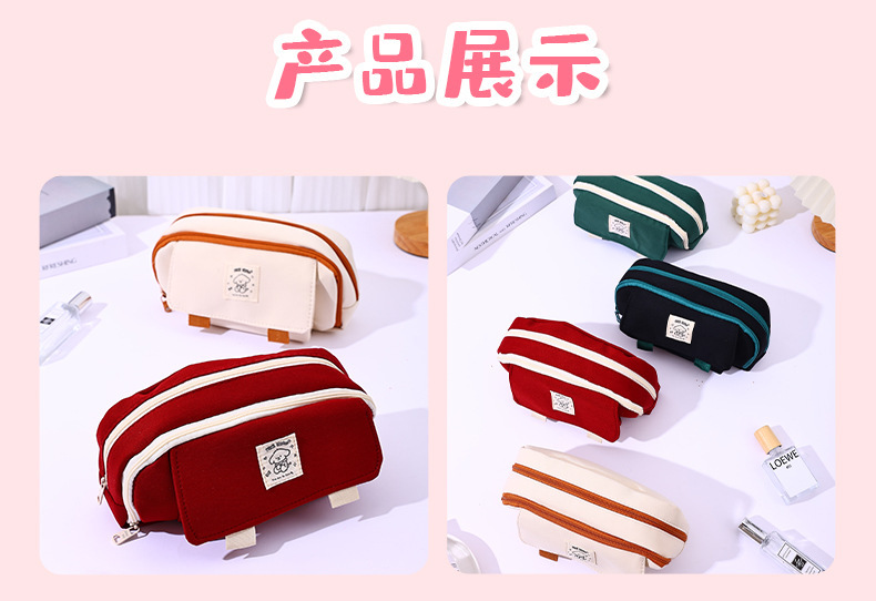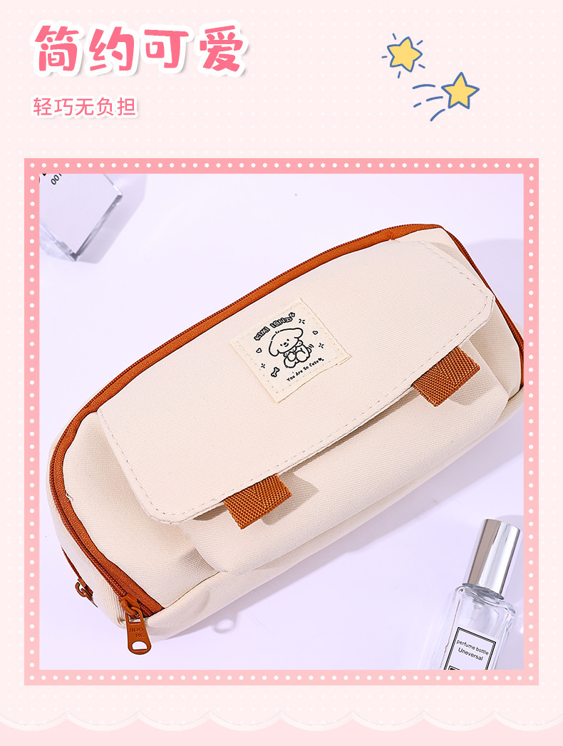 Lindo estuche para lápices para cachorros de alto valor, caja de lápices de doble capa de gran capacidad y resistente a la suciedad, bolso de papelería de alta calidad de lona de viento simple