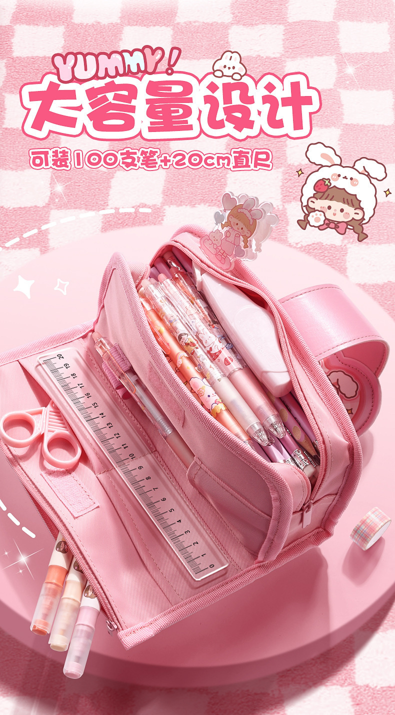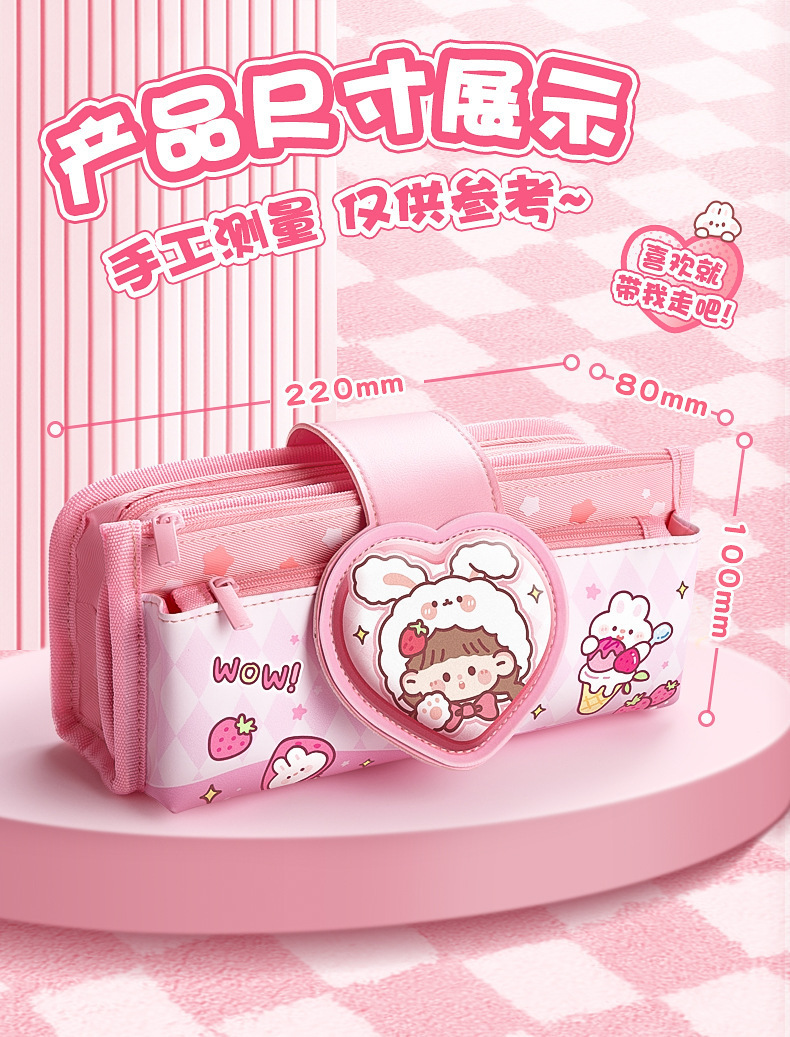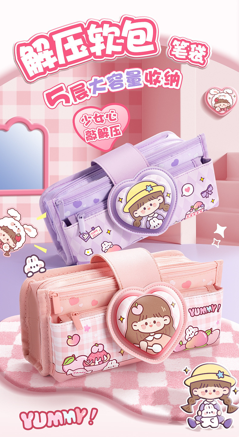 Estuche para lápices de cuero suave con tapa abatible de dibujos animados para estudiantes de primaria descompresión nuevo estuche para lápices para niñas lindas caja de papelería de gran capacidad de múltiples capas