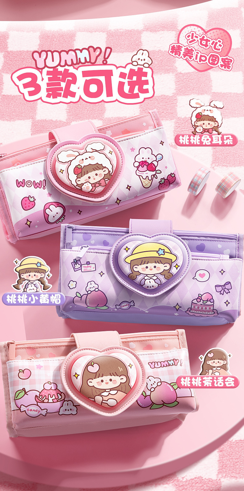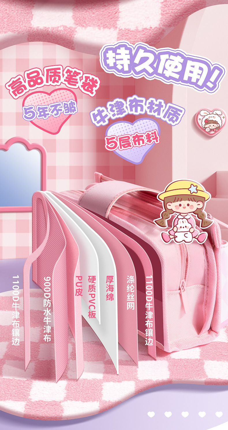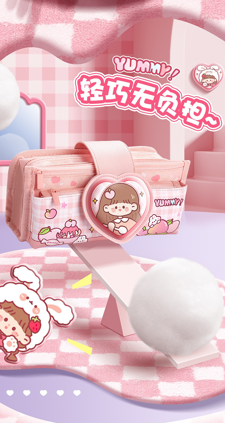 Estuche para lápices de cuero suave con tapa abatible de dibujos animados para estudiantes de primaria descompresión nuevo estuche para lápices para niñas lindas caja de papelería de gran capacidad de múltiples capas