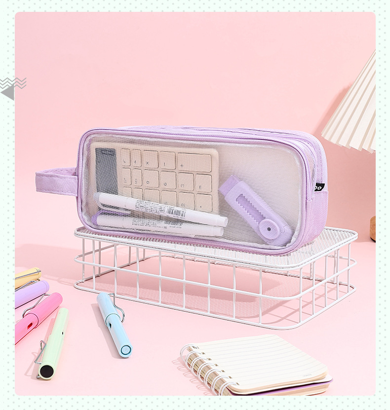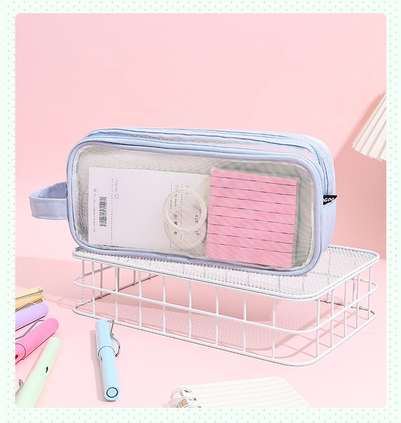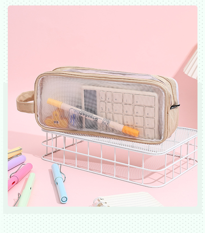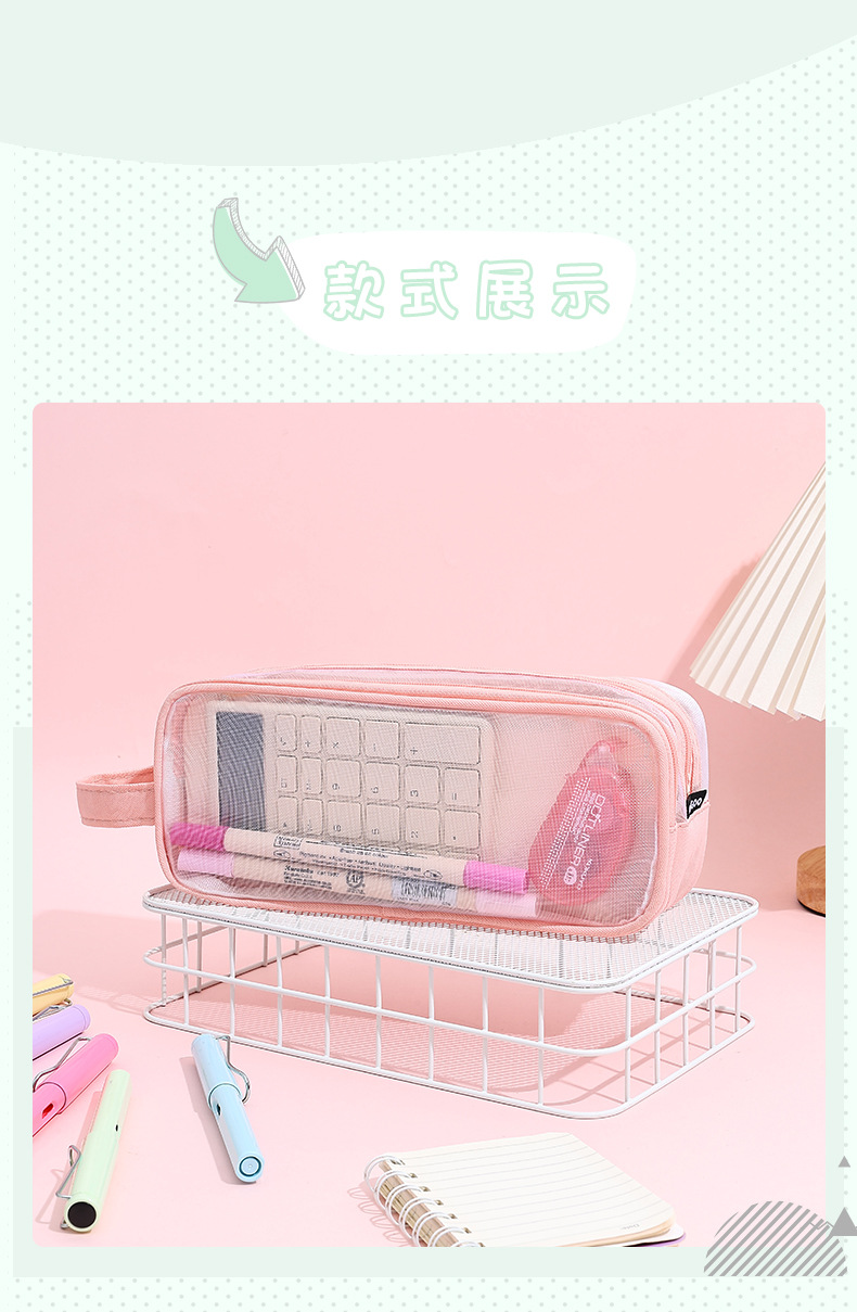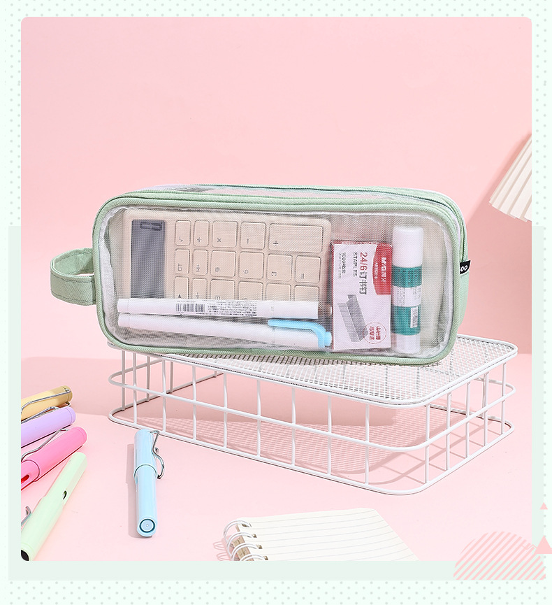 Bolsa de lápices de malla, bolsa de papelería para estudiantes de gran capacidad, caja de lápices de estilo ins simple, caja de lápices transparente para exámenes de alto valor