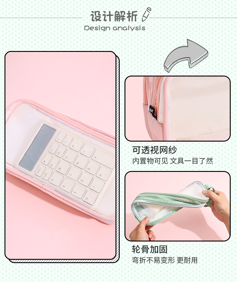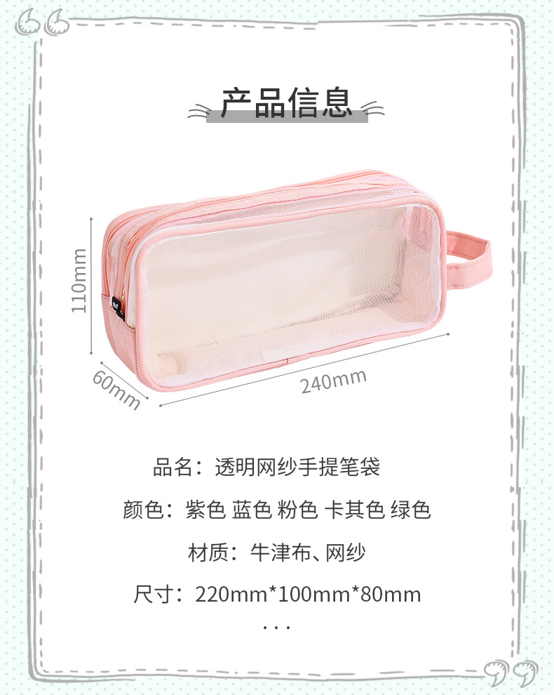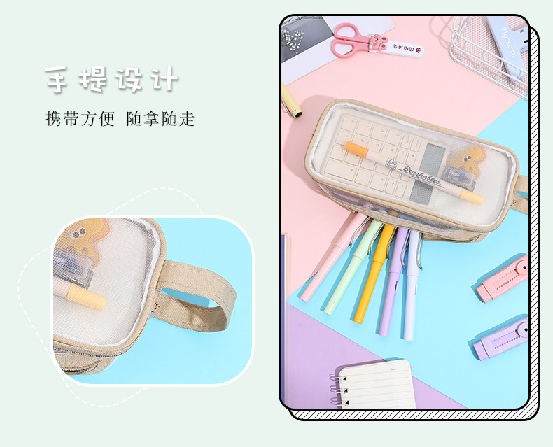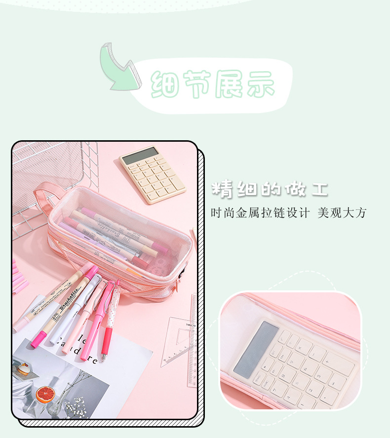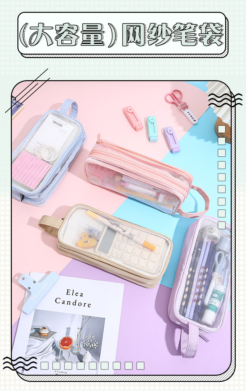 Bolsa de lápices de malla, bolsa de papelería para estudiantes de gran capacidad, caja de lápices de estilo ins simple, caja de lápices transparente para exámenes de alto valor