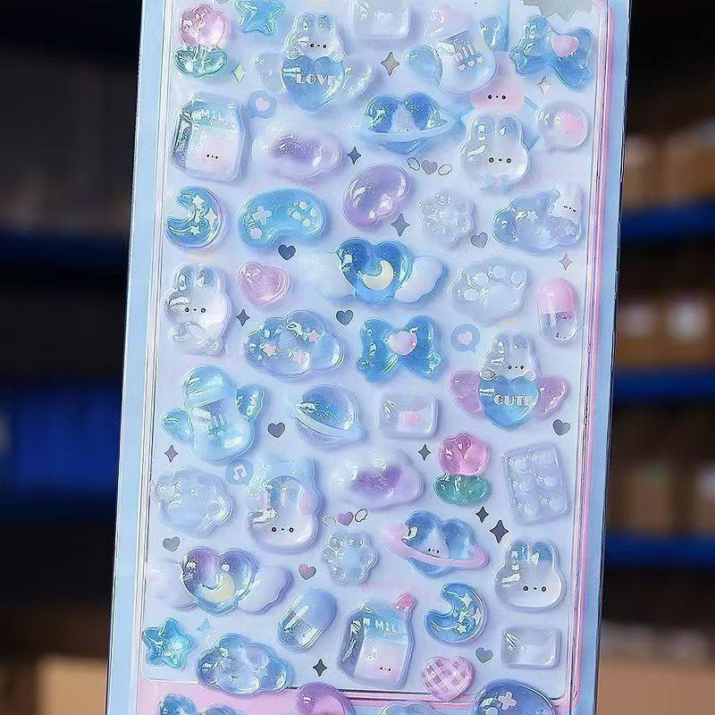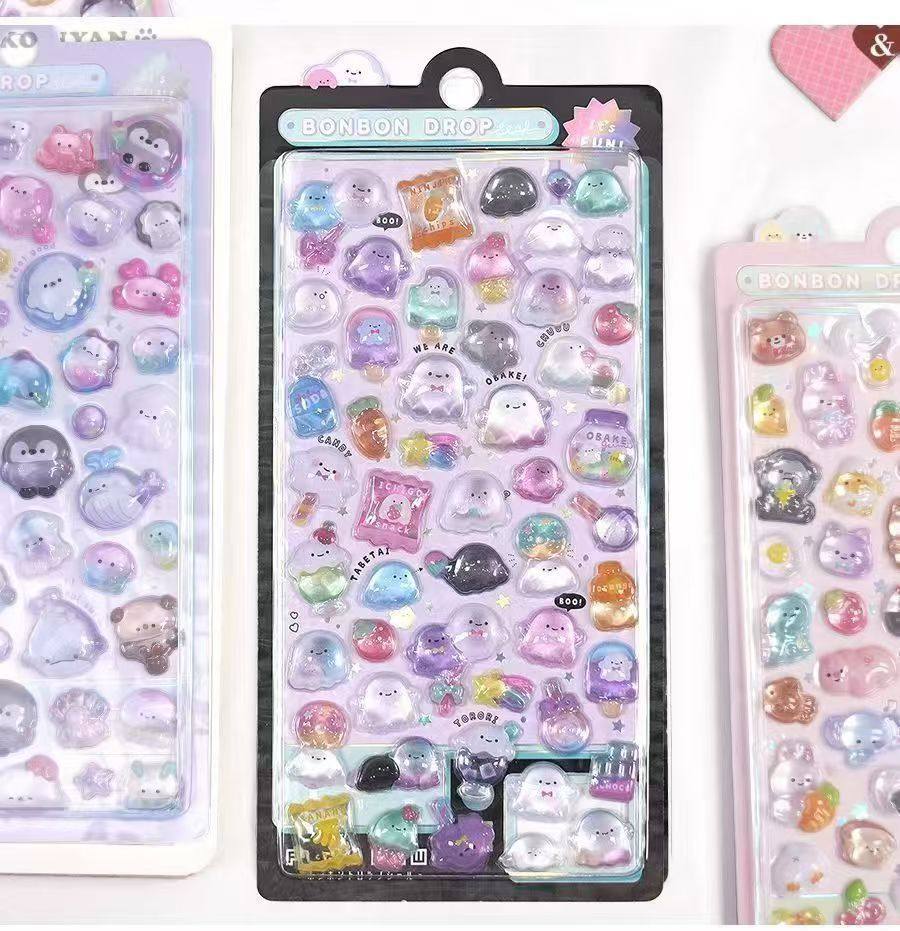 Dibujos animados japoneses hermosos 3D en relieve acrílico diamante gema pegatinas para niños niñas pegatinas decorativas