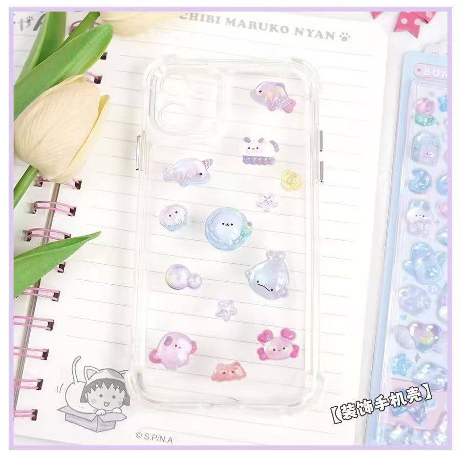 Pequeña serie de hojaldre cuenta pvc impermeable transparente pegatinas diy goo placa cuaderno dorado taza de agua papelería pegatinas
