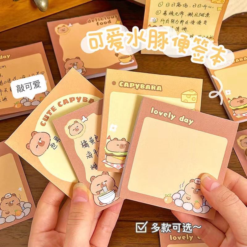 El cuaderno de notas de Kapibala se puede rasgar y no pegajoso, notas adhesivas para estudiantes, notas de dibujos animados, papel de notas lindo y de alto valor