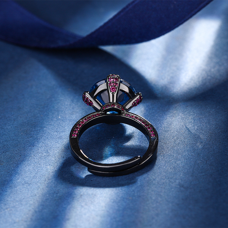 | Color | Anillo de corindón rojo oro negro,Anillo de cristal puntiagudo azul en oro negro |