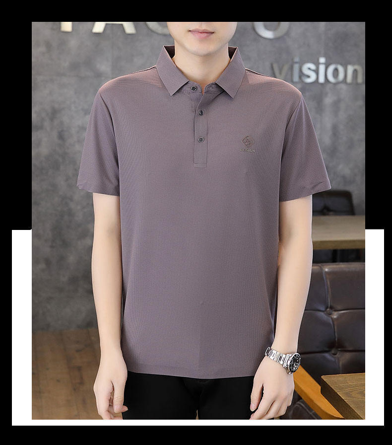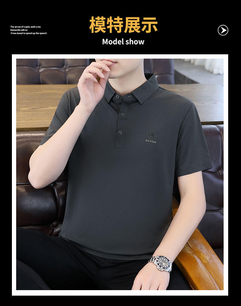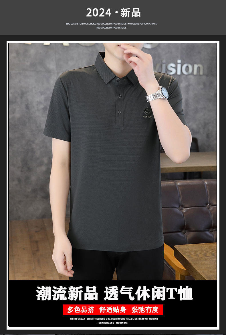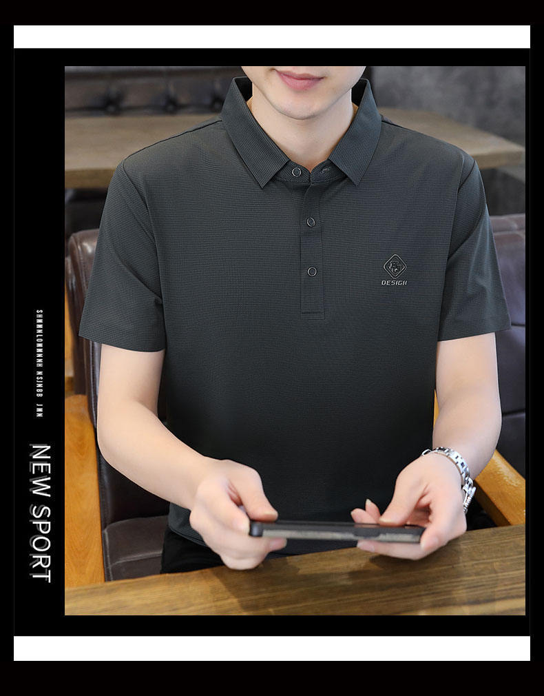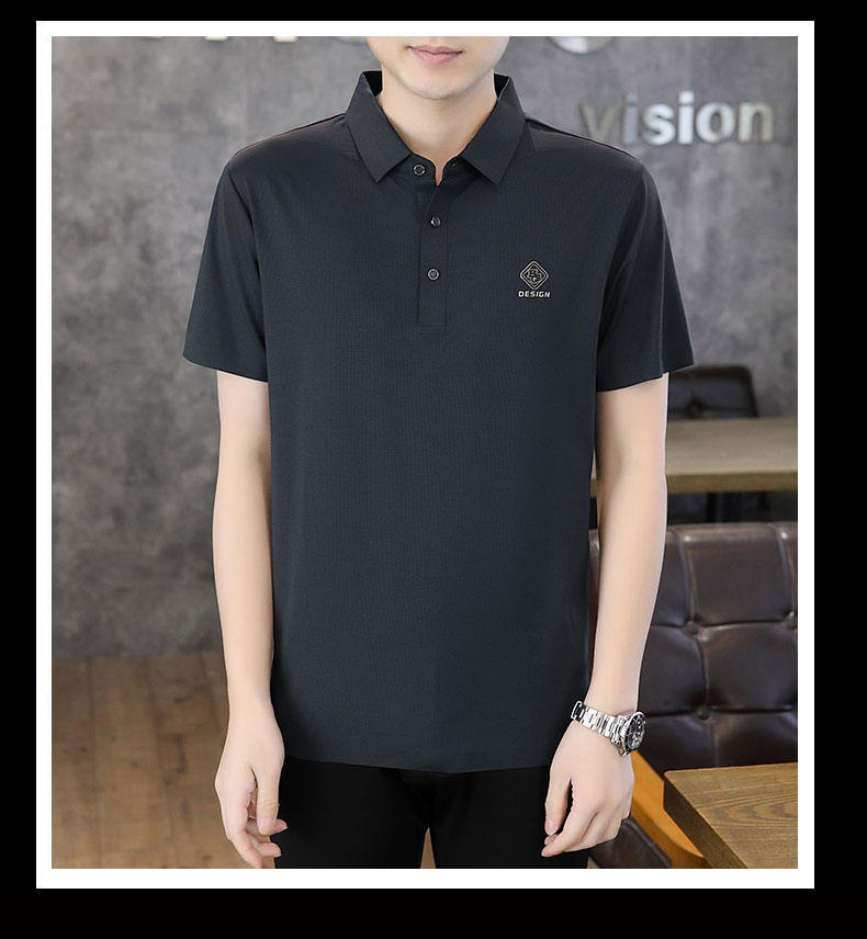 Verano nuevo estilo de manga corta de seda de hielo sin costuras polo de los hombres de gama alta nailum de secado rápido casual solapa camiseta top de moda