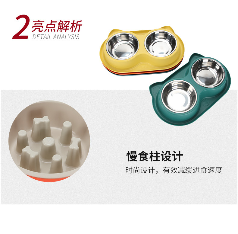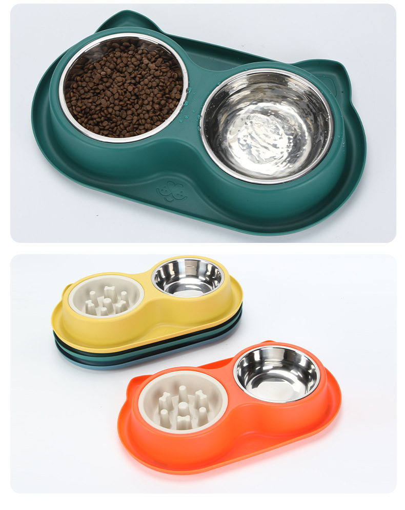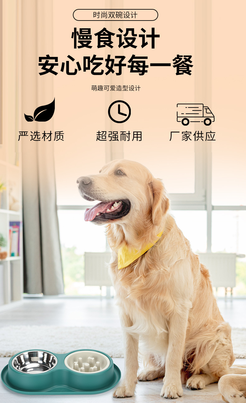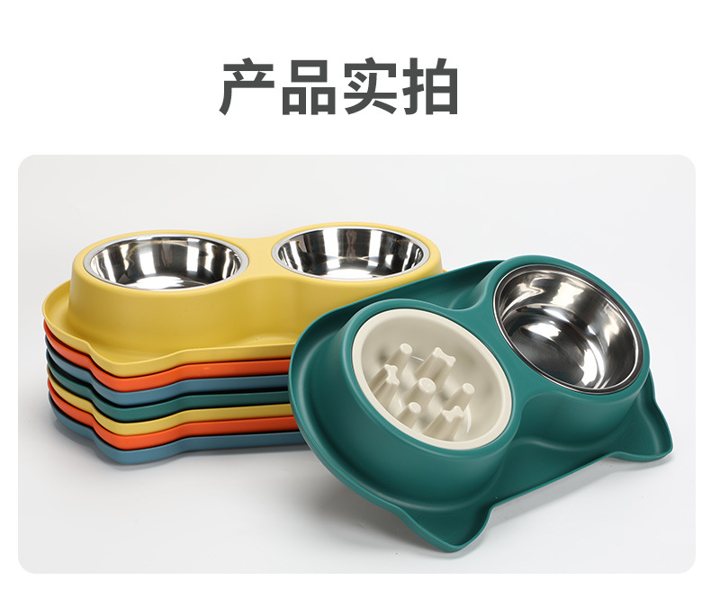 Mascota de acero inoxidable de plástico doble tazón antideslizante a prueba de fugas antidetonante comida lenta alimentador de una pieza de gran capacidad suministros para perros