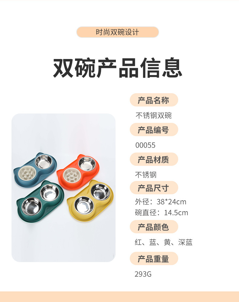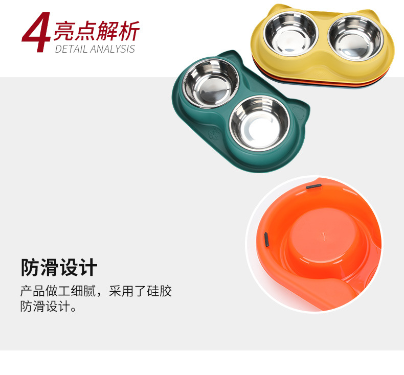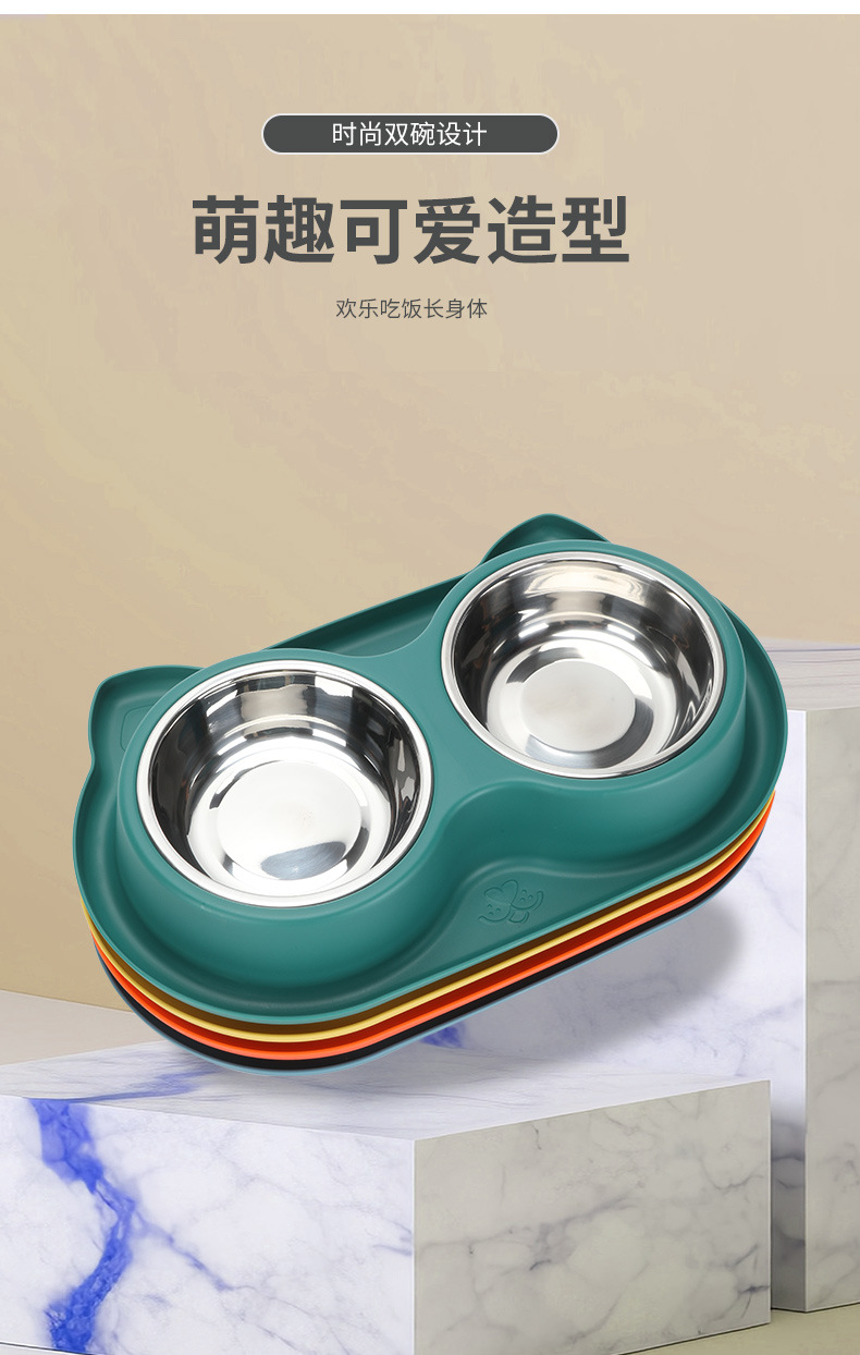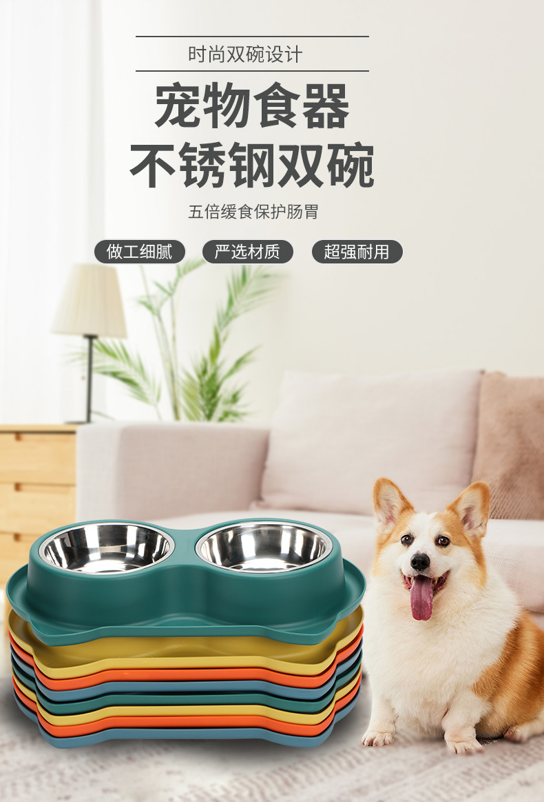 Mascota de acero inoxidable de plástico doble tazón antideslizante a prueba de fugas antidetonante comida lenta alimentador de una pieza de gran capacidad suministros para perros