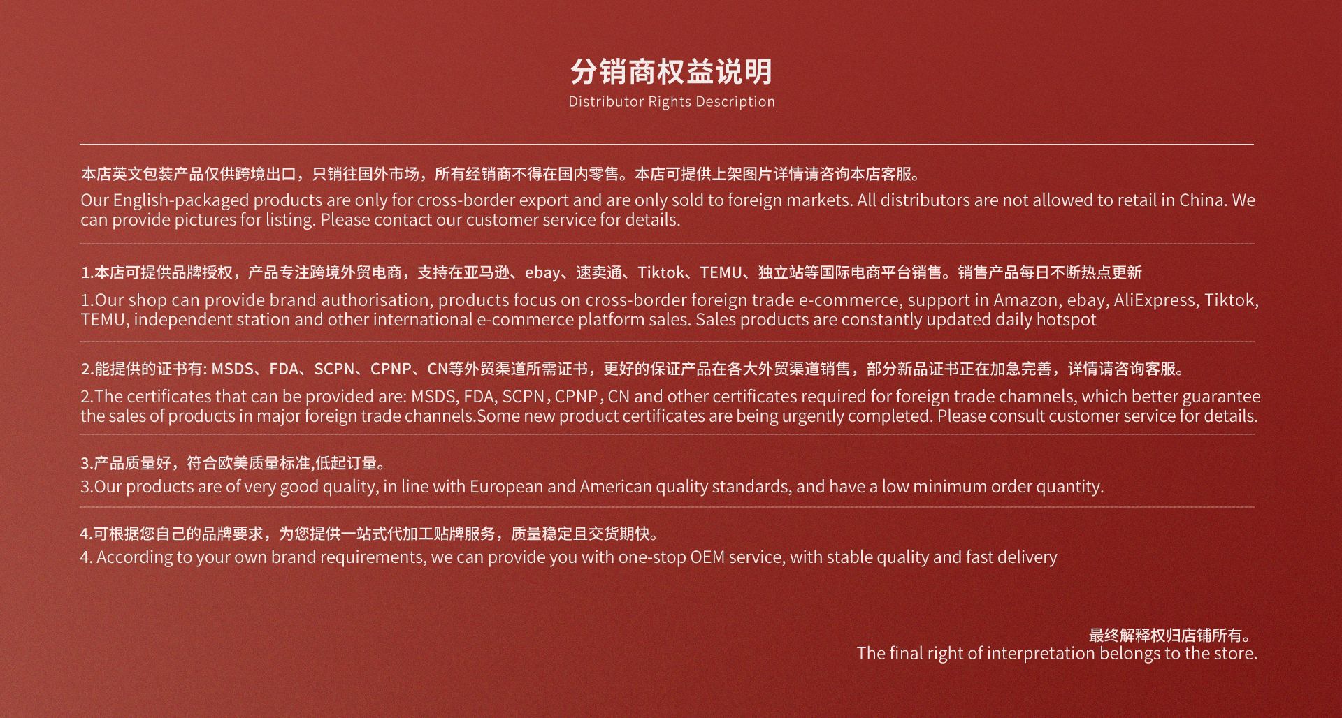 | Principales plataformas aguas abajo | ebay,Amazon,AliExpress,Estación independiente,LAZADA |