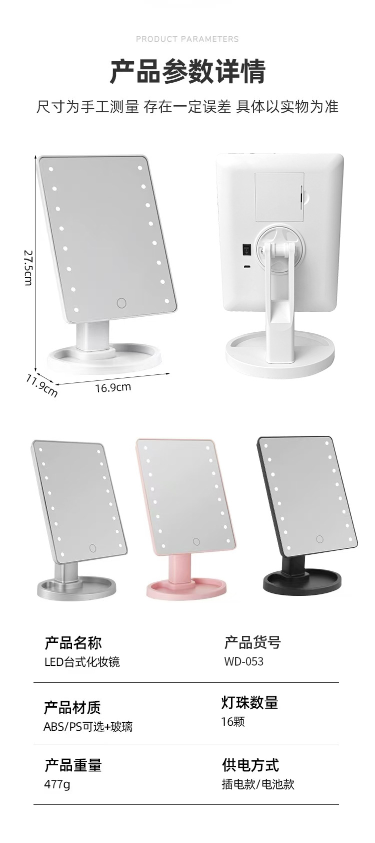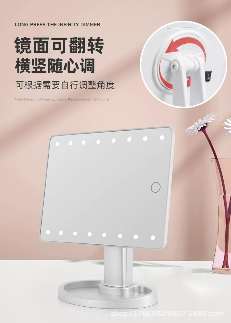 Al por mayor espejo led de almacenamiento de luz de relleno de luz HD espejo de tocador de una cara espejo de maquillaje portátil de inducción de escritorio táctil