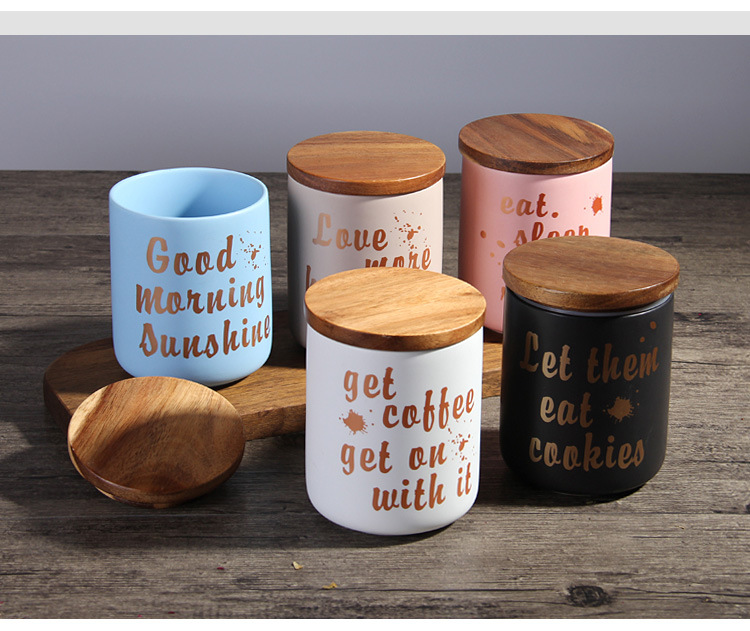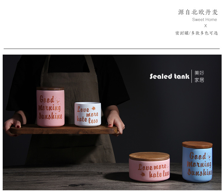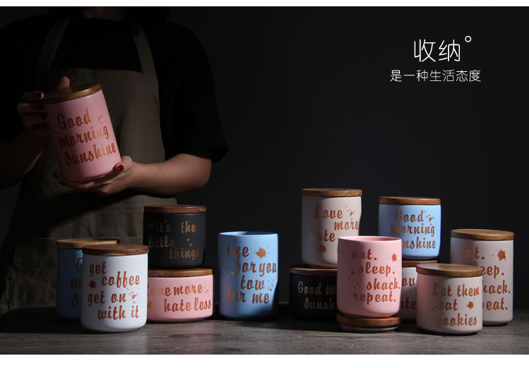 Nórdico creativo tarro de almacenamiento de cerámica con tapa sellada tarro de almacenamiento de cocina té café tarro decoración del hogar al por mayor