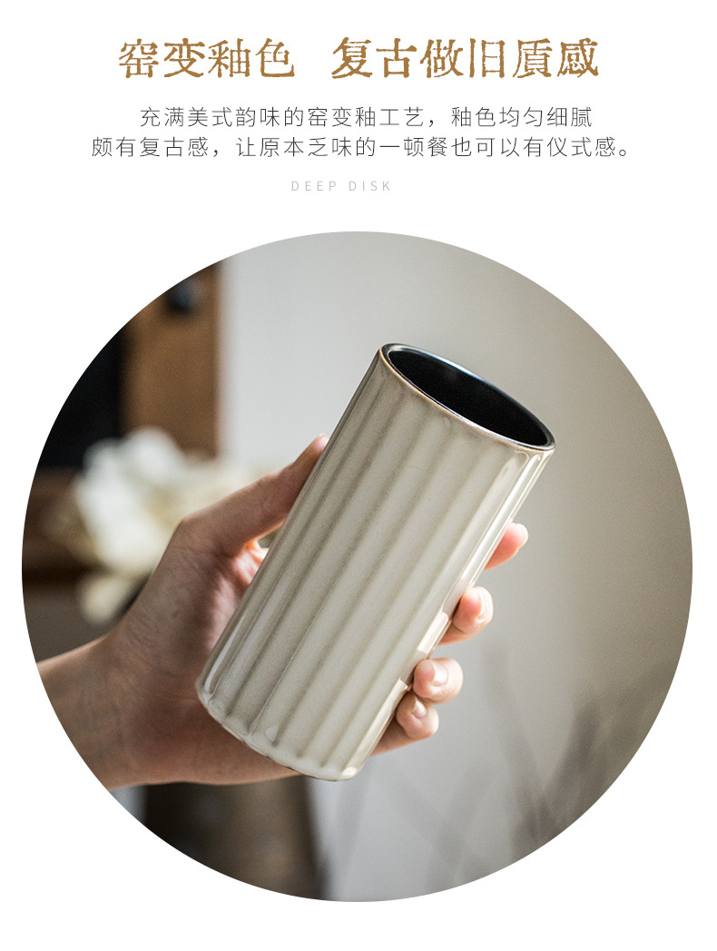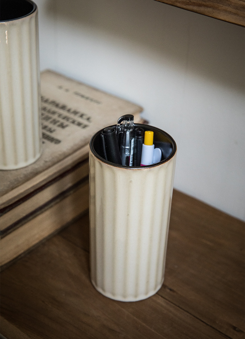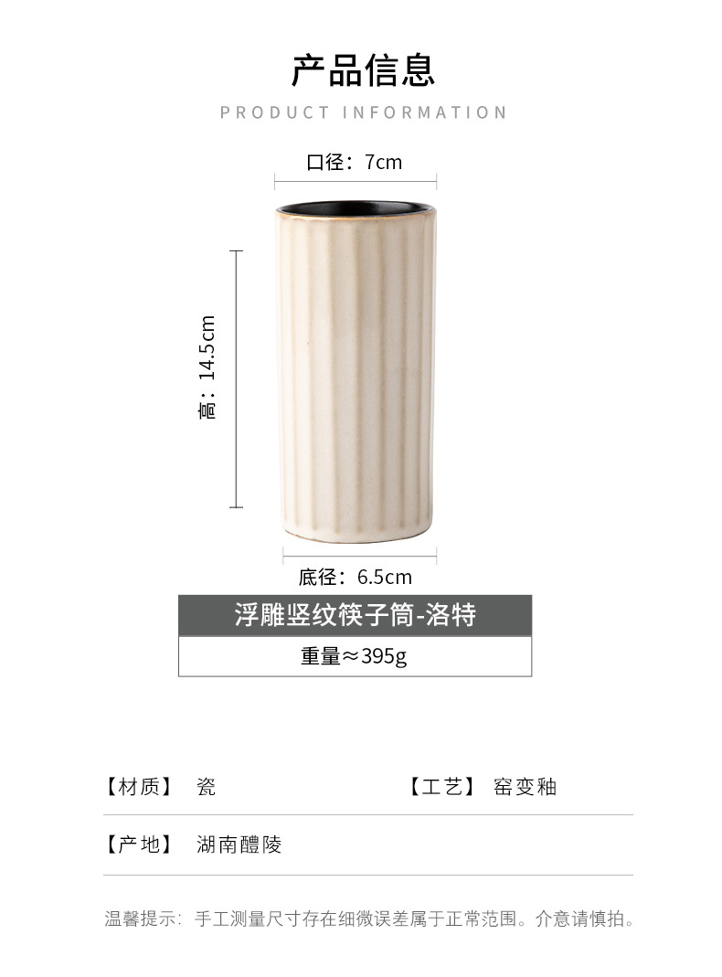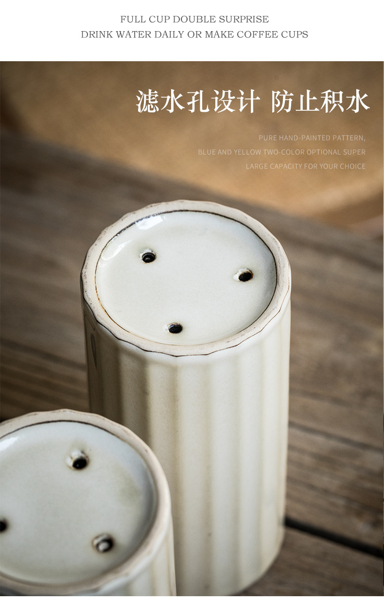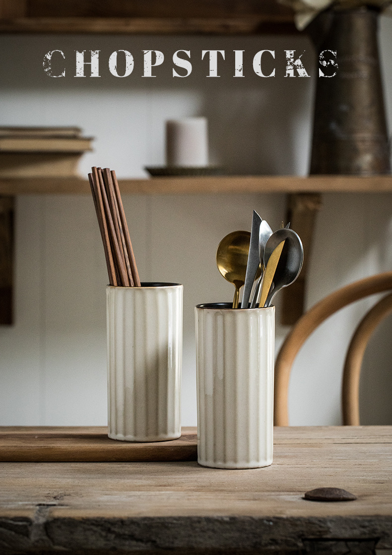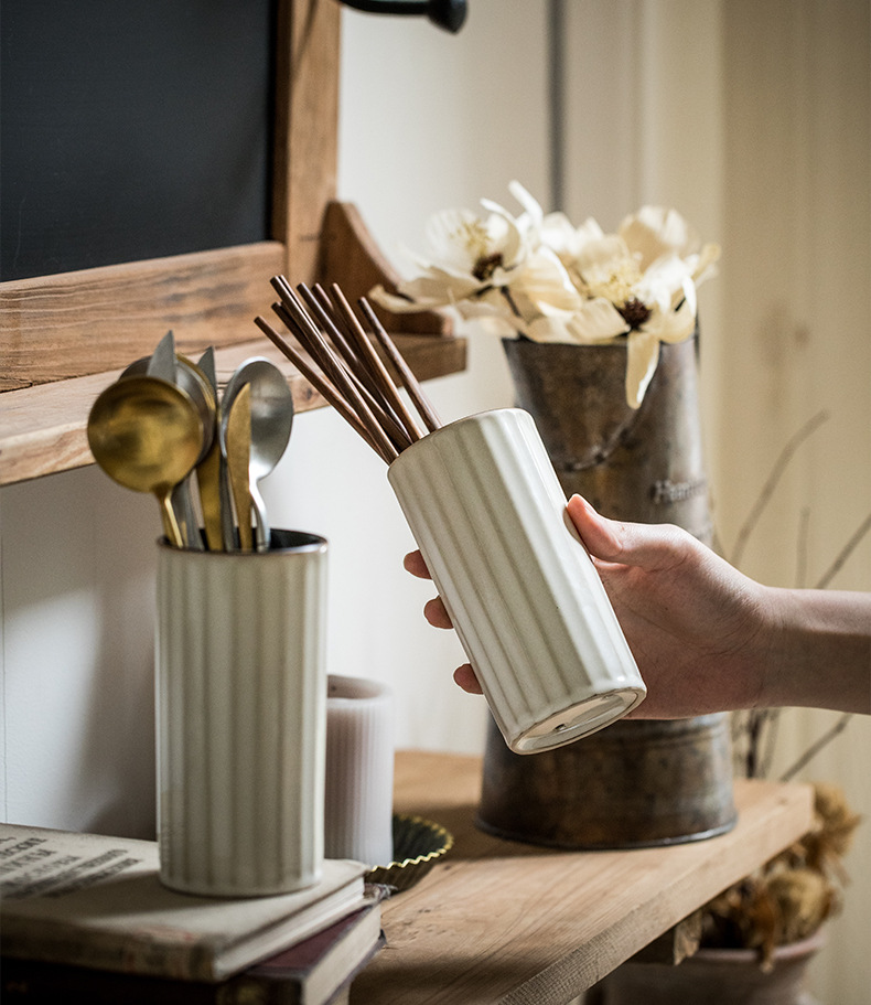Práctico tubo de palillos de cerámica retro destacado hogar en relieve Lott con orificio de drenaje tubo de almacenamiento de palillos exportación transfronteriza