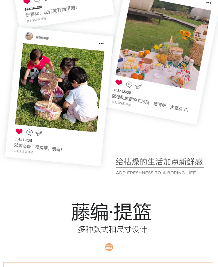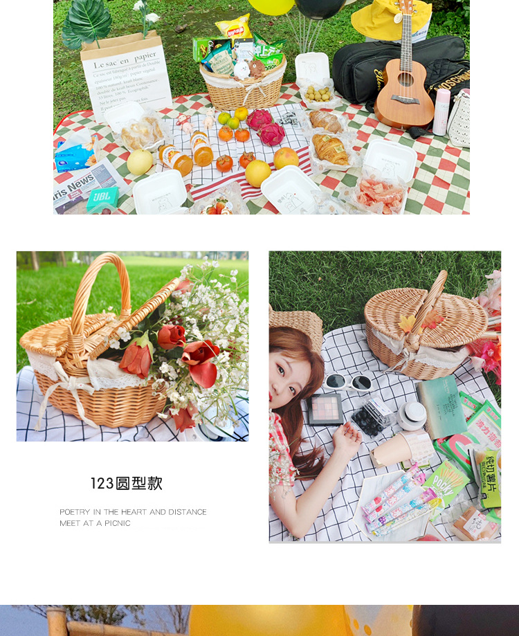 Cesta de picnic de mimbre tejida ins cesta de mano cesta de almacenamiento de ratán cesta de frutas de regalo cesta de almacenamiento de compras tejida