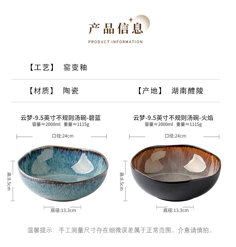 | Colores | Yunmeng-tazón de sopa irregular de 9,5 pulgadas-llama,Yunmeng-tazón de sopa irregular de 9,5 pulgadas-azul |