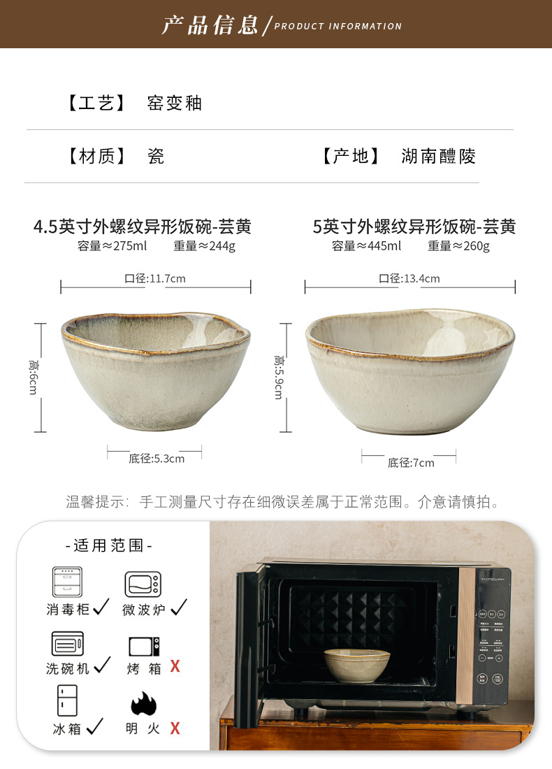 | Colores | Tazón de arroz de forma especial con rosca externa de 4,5 pulgadas-Yun Huang,Tazón de arroz de forma especial con rosca externa de 5 pulgadas-Yunhuang |