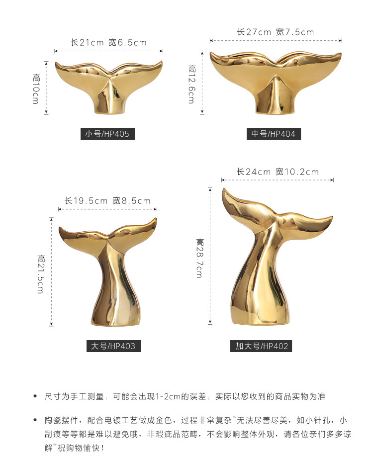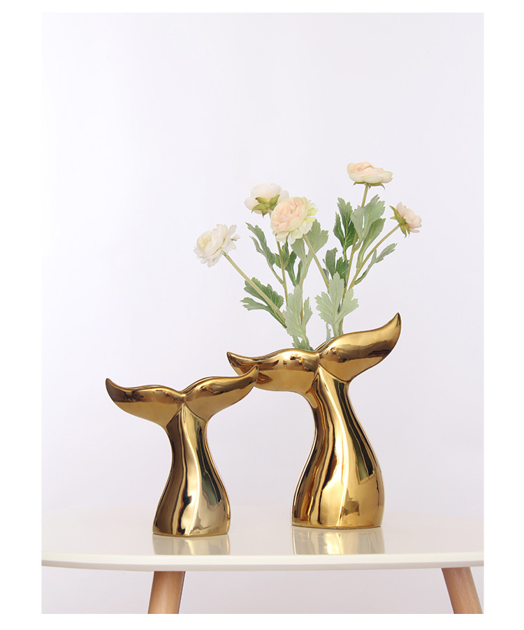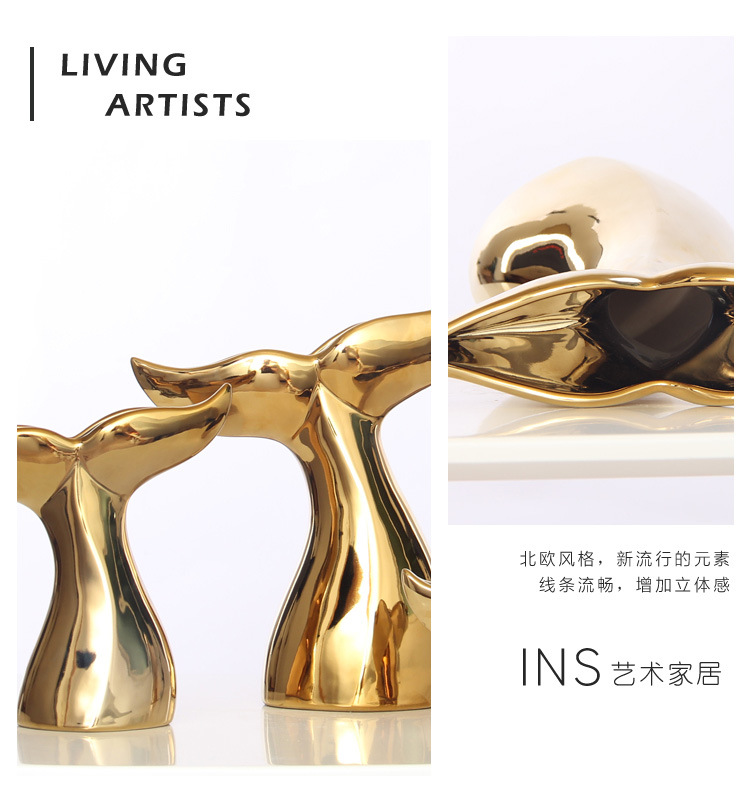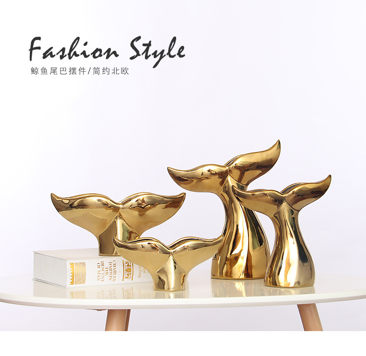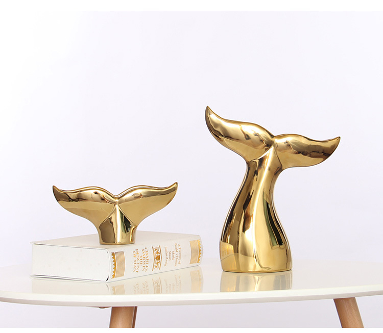 Artesanía de cerámica ballena oro cola simple nórdico Home Hotel Sala decoración TV gabinete suave