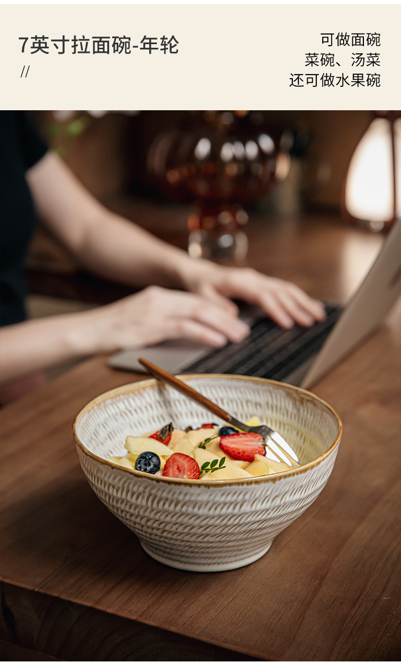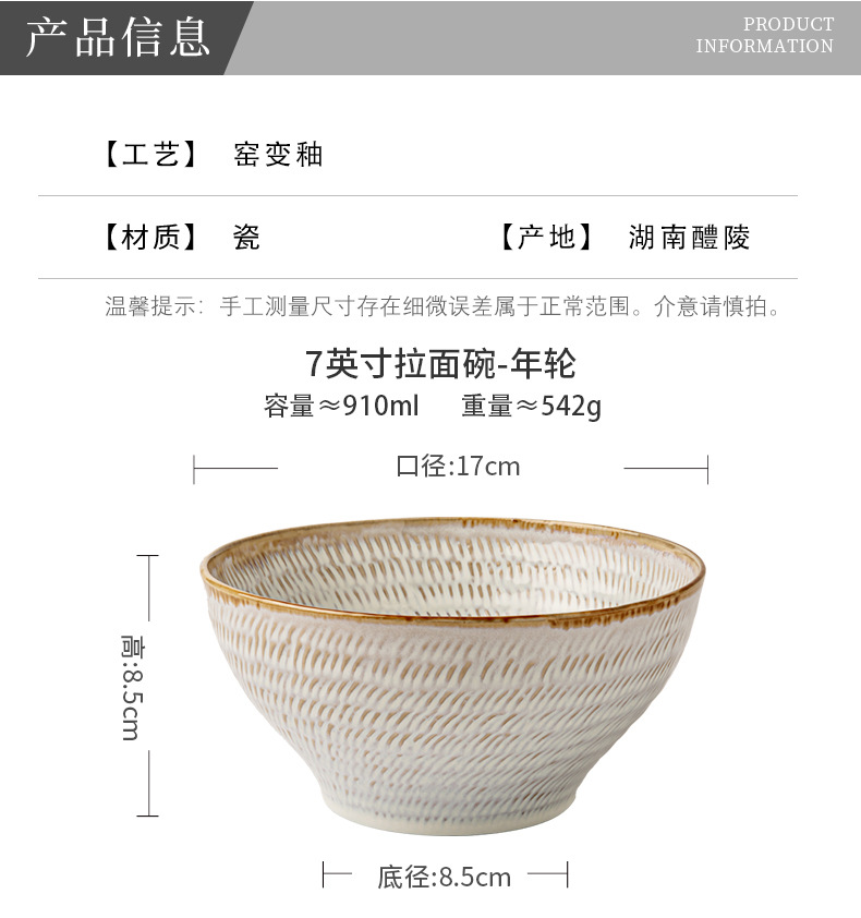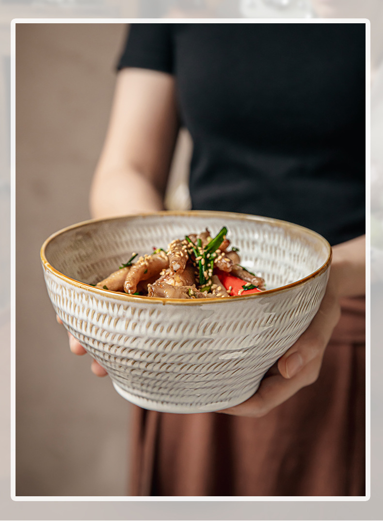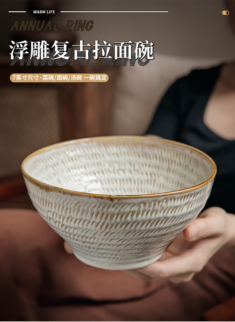 Justo hermoso relieve de 7 pulgadas Ramen tazón retro alto tazón de exportación transfronteriza tazón de cerámica tazón de fideos