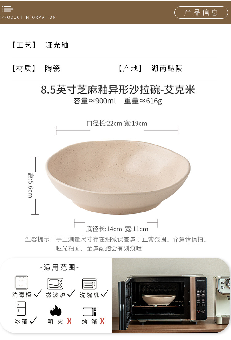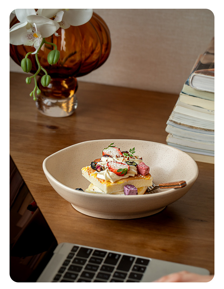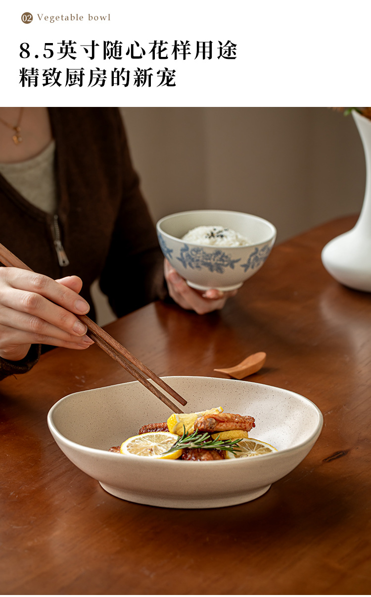 8.5 pulgadas Ike cuencos de ensalada especiales in sésamo esmalte en forma de platos de platos de arroz de curry de cerámica exportación transfronteriza