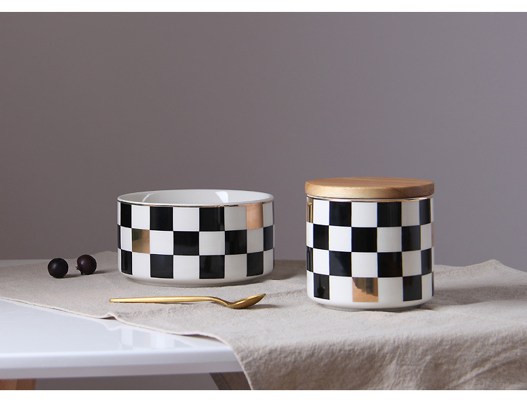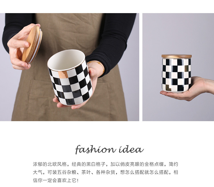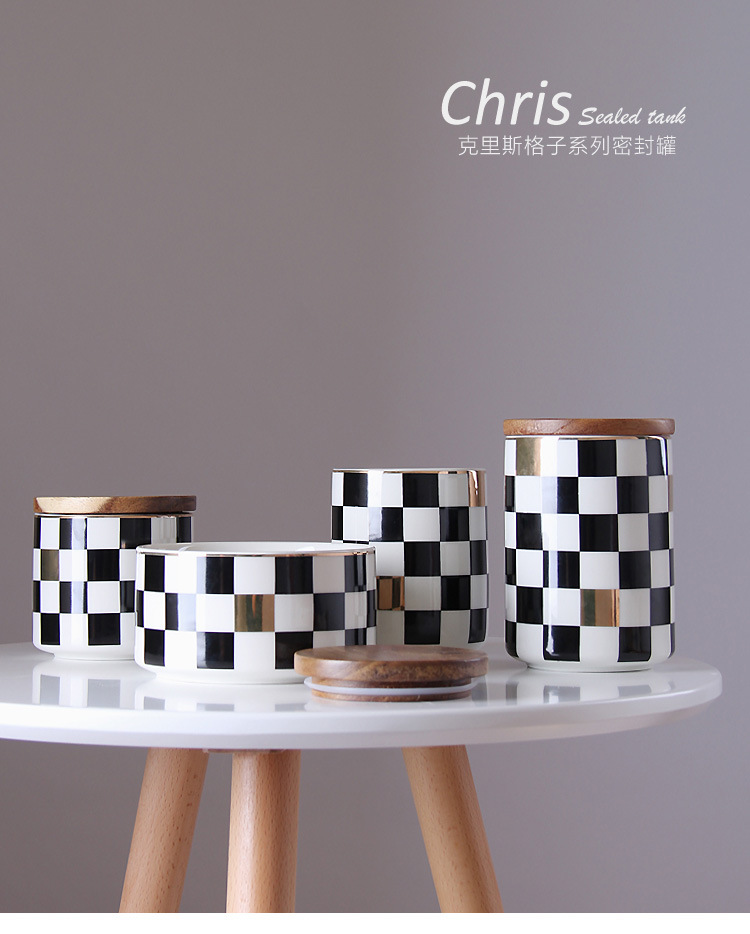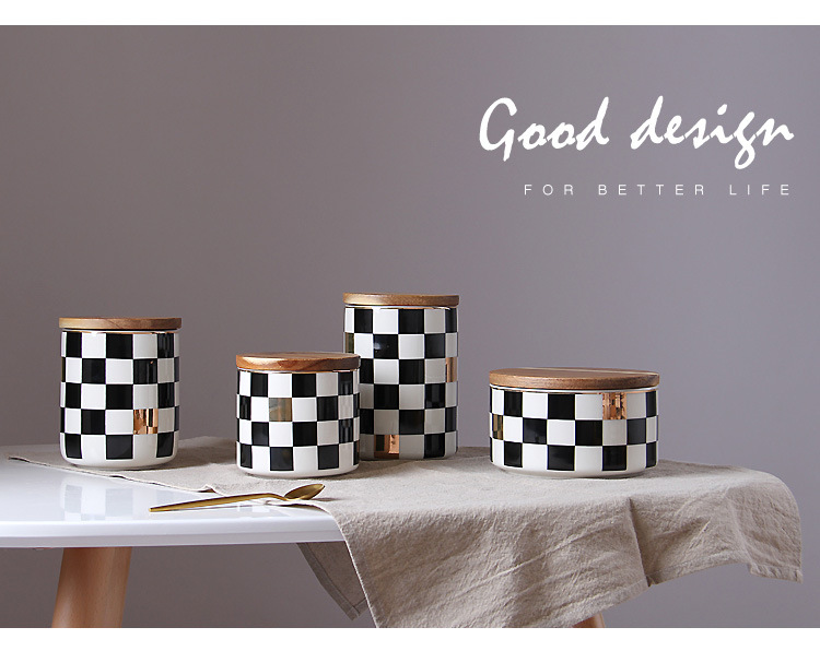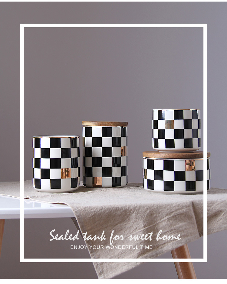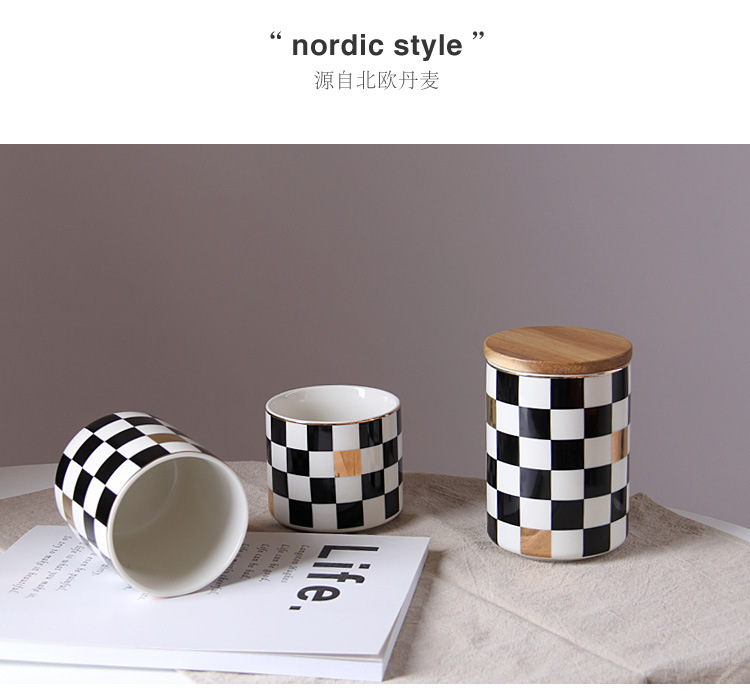 Jarra sellada geométrica nórdica con tapa jarra de almacenamiento de cerámica caja de almacenamiento de café perfumado granos de té decoración de tarro de caramelo