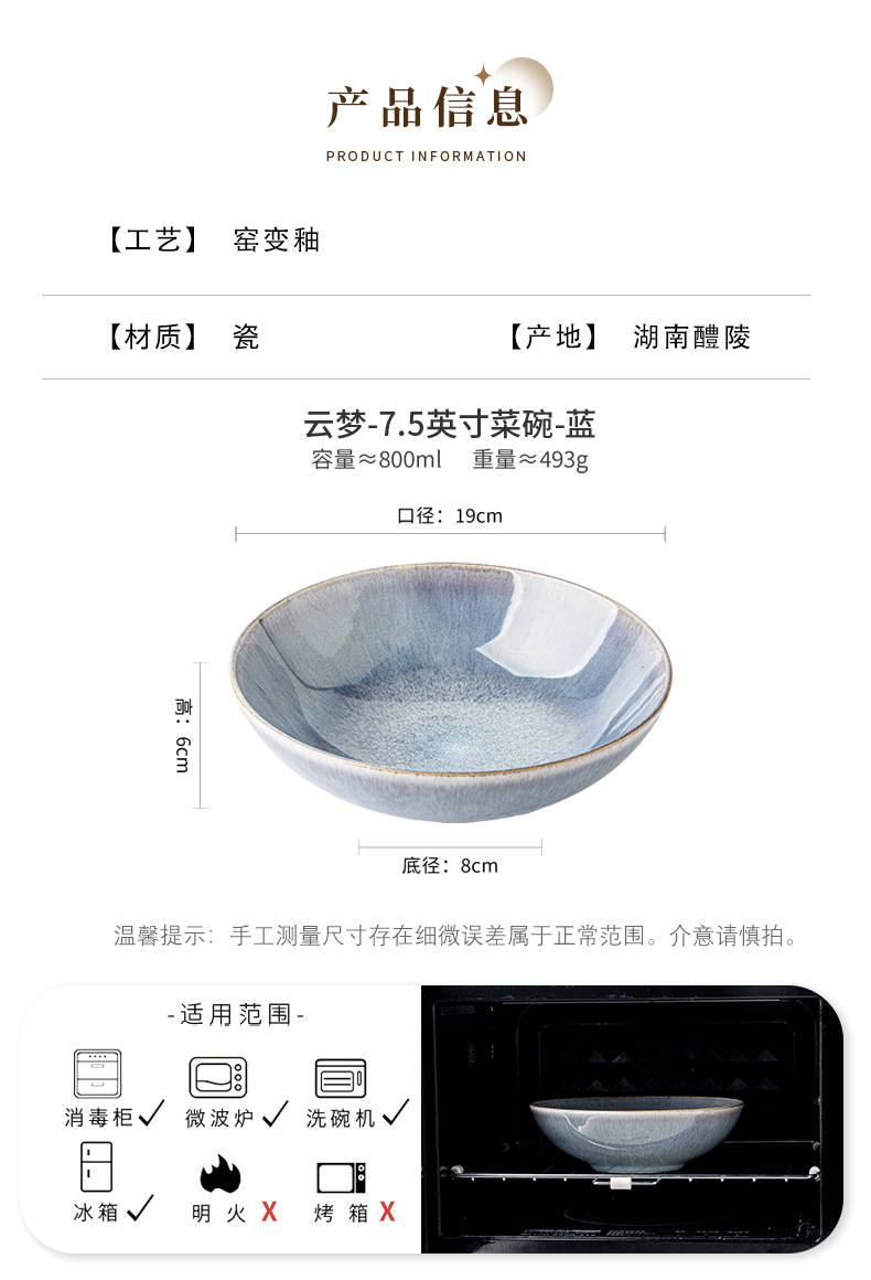 Yunmeng - tazón de verduras de 7,5 pulgadas - azul