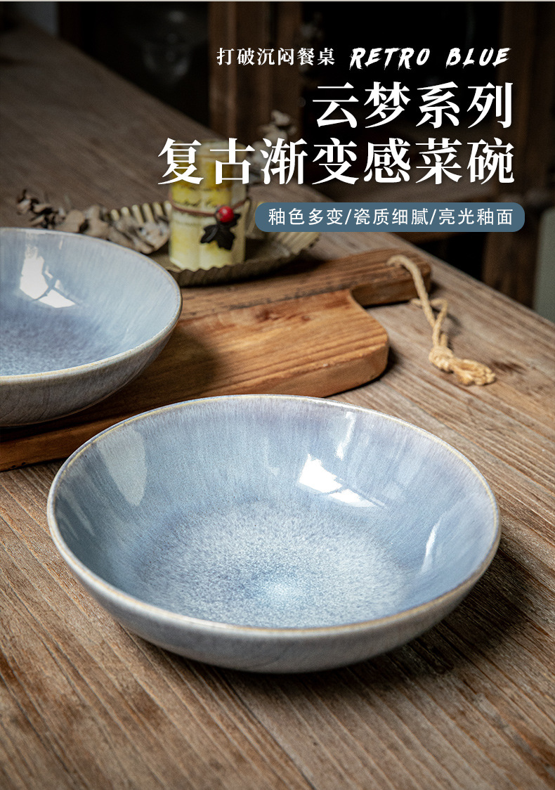 Gradiente horno esmalte de 7,5 pulgadas tazón de cerámica tazón de fideos retro tazón de comida china de cocina privada cubiertos exportación transfronteriza
