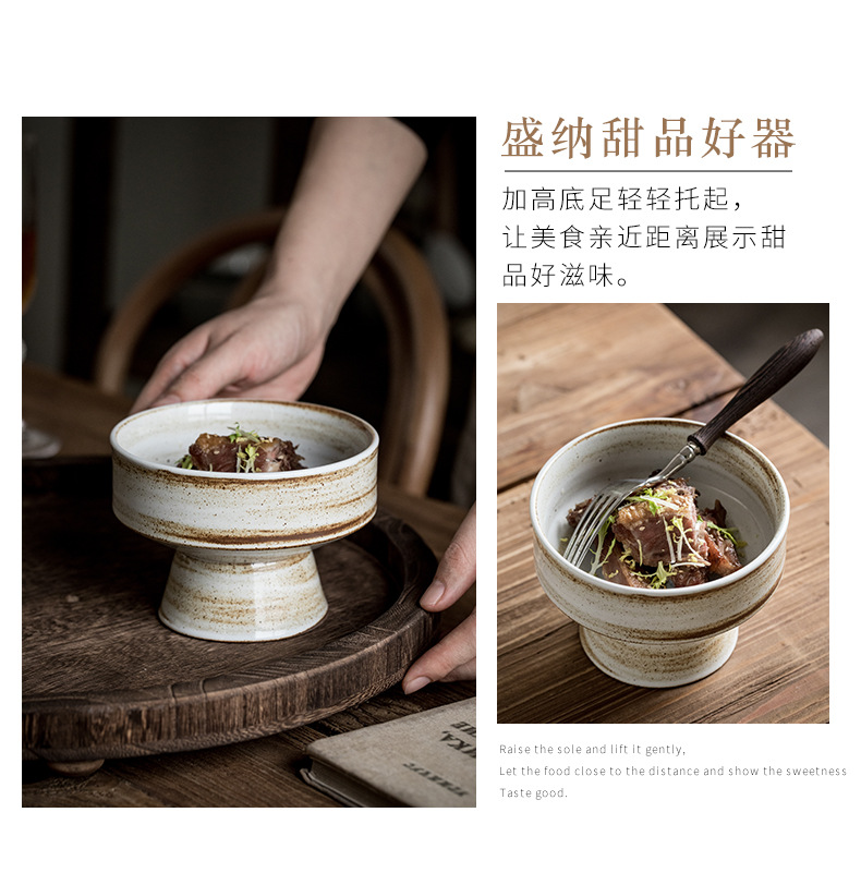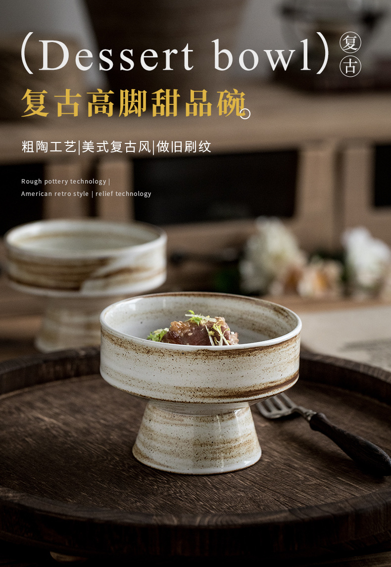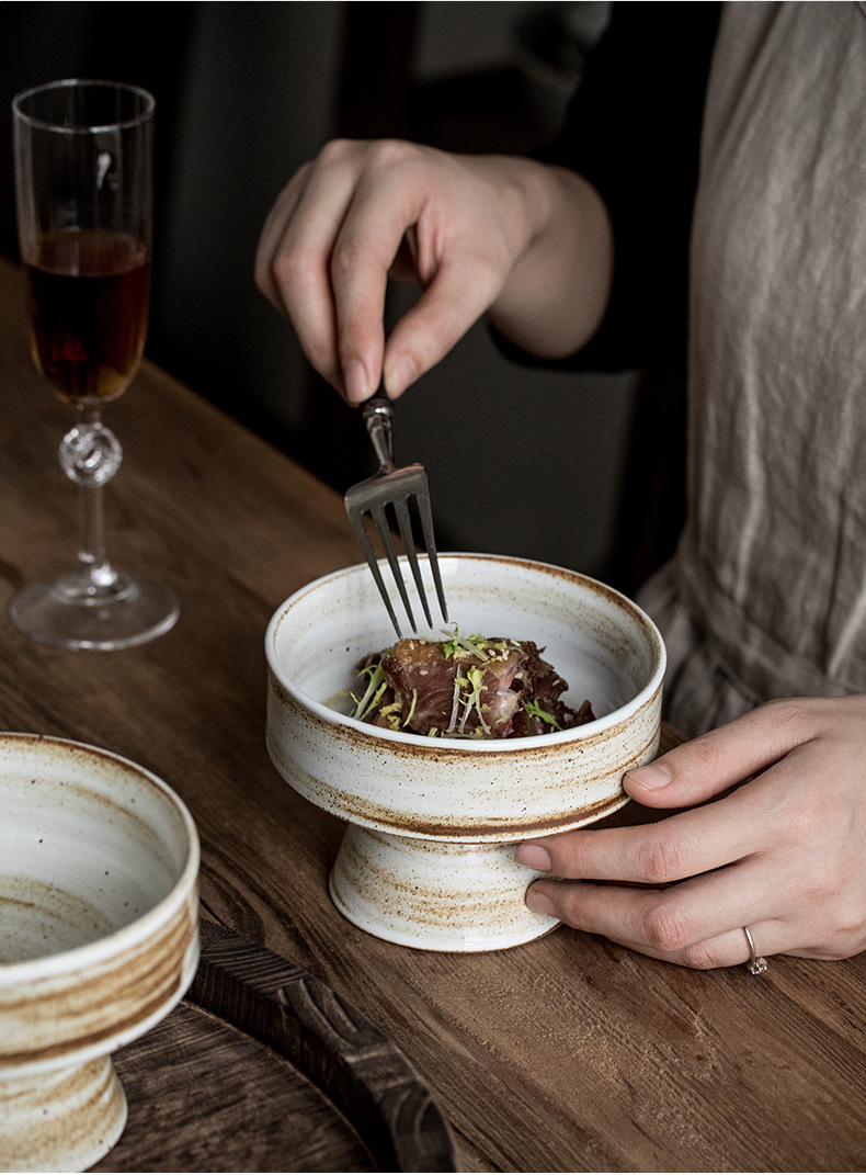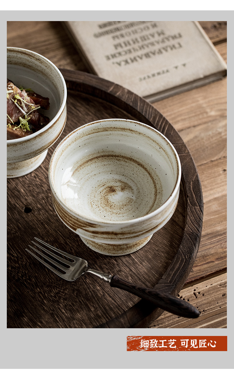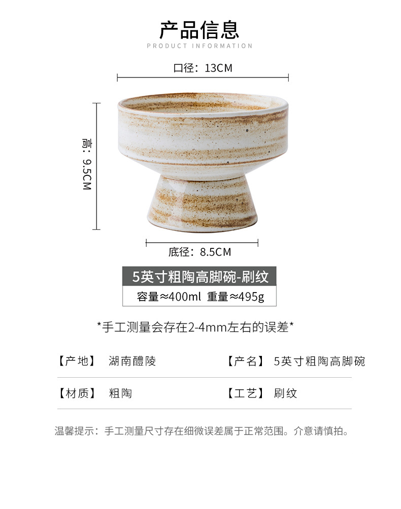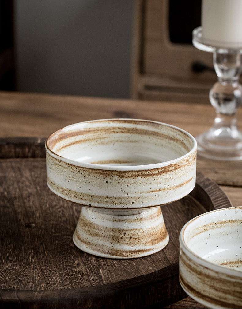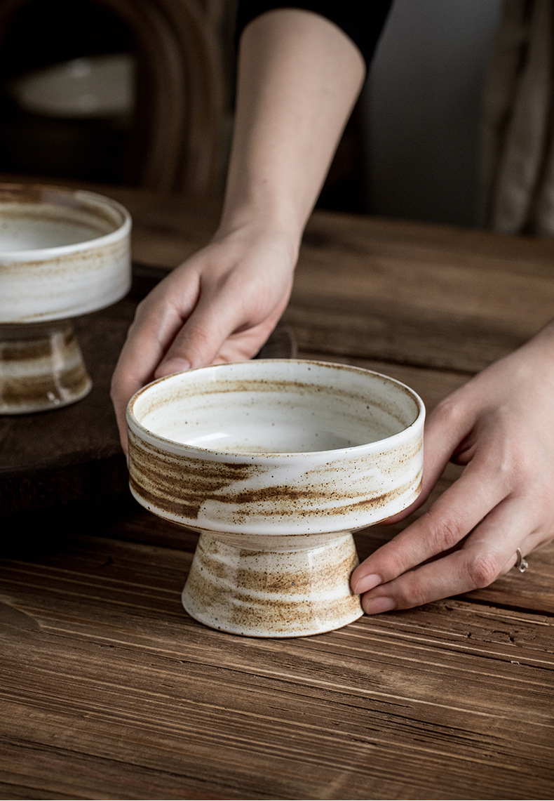| Color | Tazón de cerámica gruesa de 5 pulgadas con pies altos - patrón de cepillo |