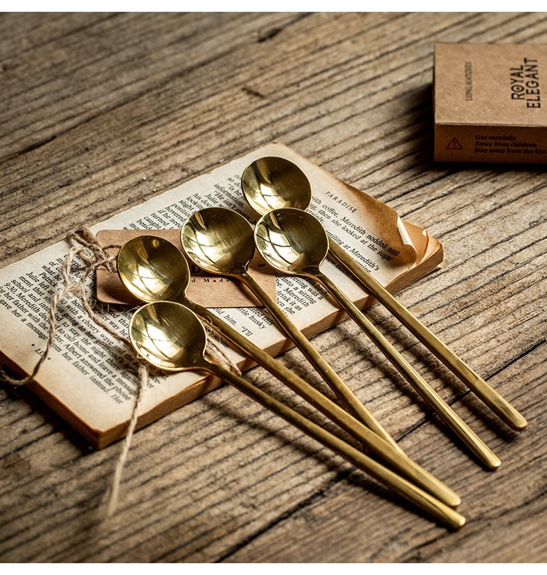 Cucharas de café de 15cm - doradas, cucharas de café de 17cm - doradas, cucharas redondas con mango curvo - doradas oscuras