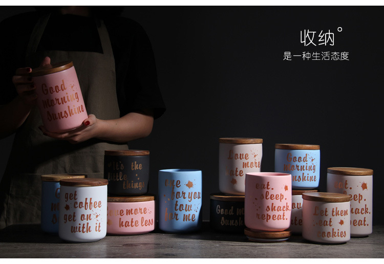 Nórdico cerámica sellada tarro de almacenamiento cocina caramelo té tarro con tapa ins decoraciones para el hogar al por mayor