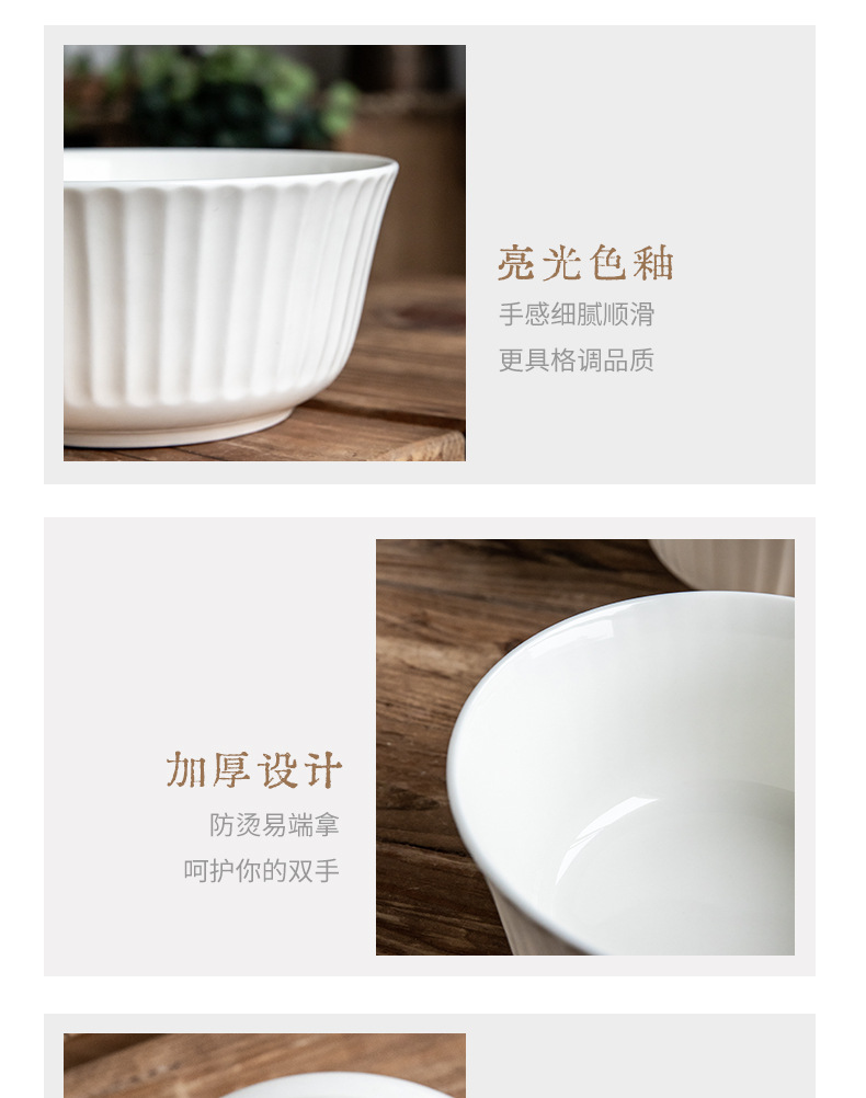 Venta directa de fábrica de cerámica Jingdezhen Porcelana de hueso para el hogar Tazón de arroz anti-escaldado Tazón de fideos Plato de arroz Plato de verduras Combinación de vajilla al por mayor