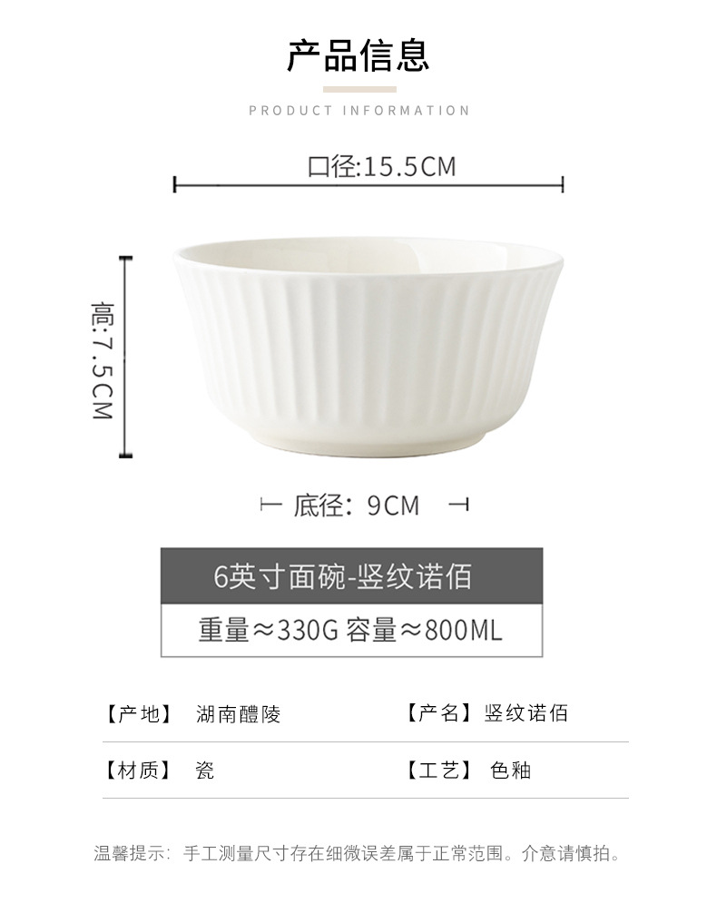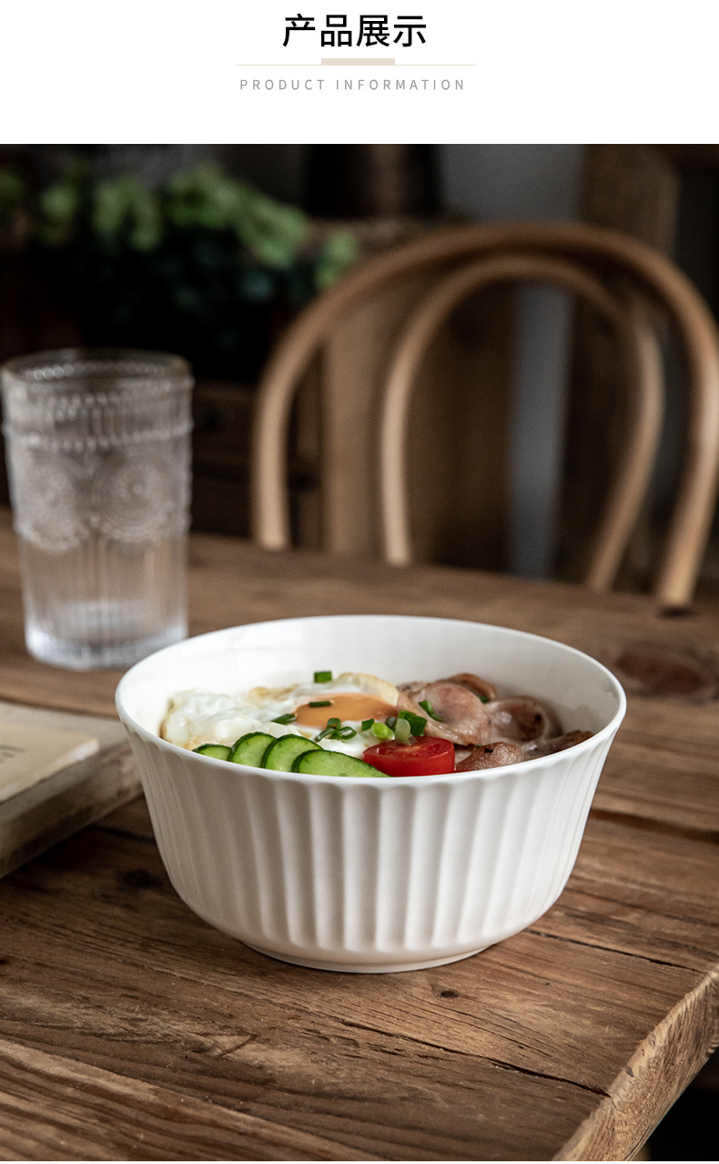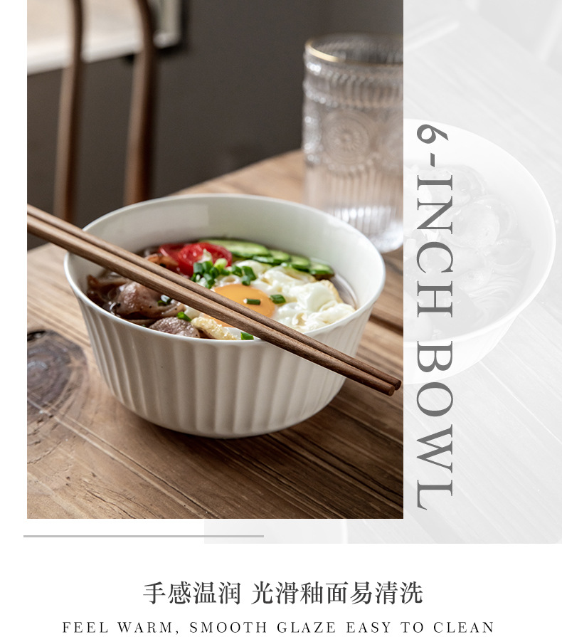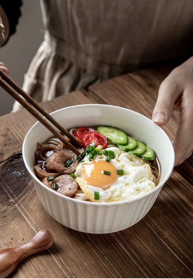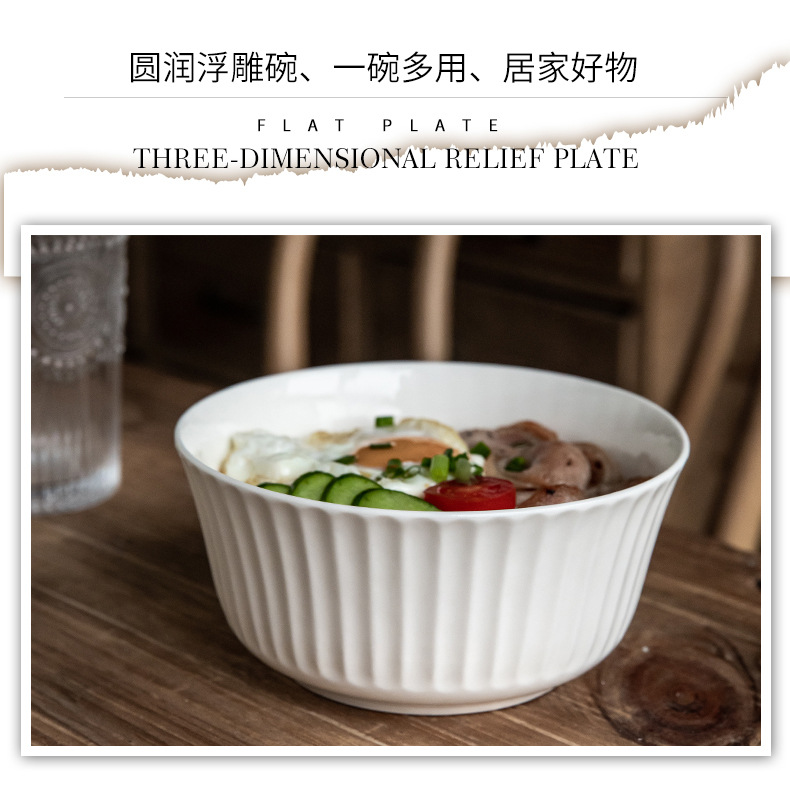 Tacos de fideos verticales de 6 pulgadas de cerámica en relieve, ensalada blanca, tazón de fideos de desayuno, exportación transfronteriza