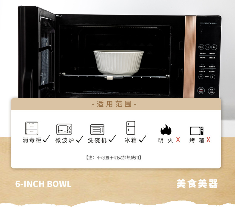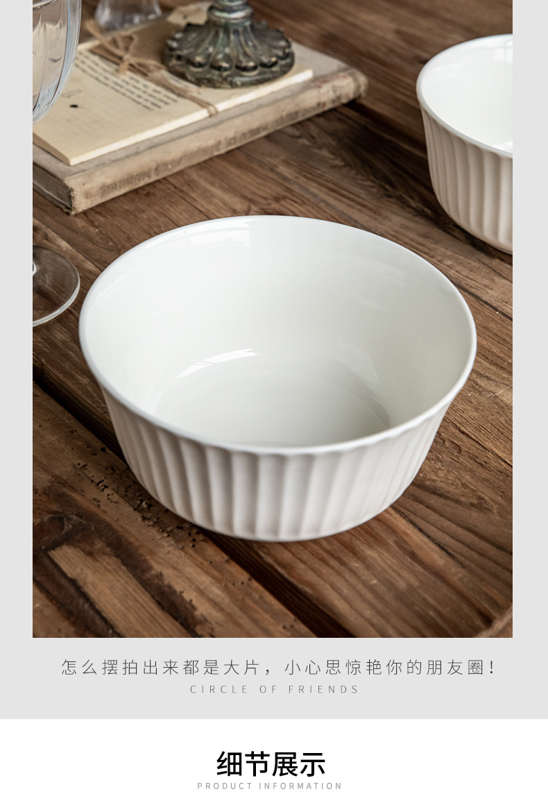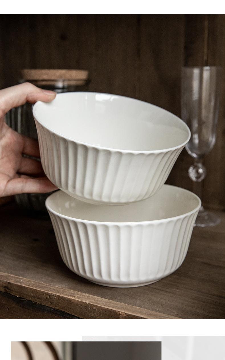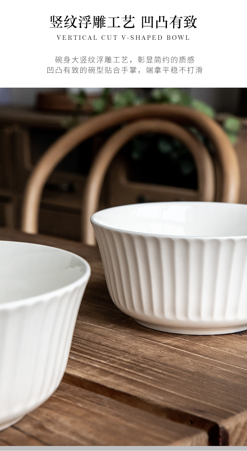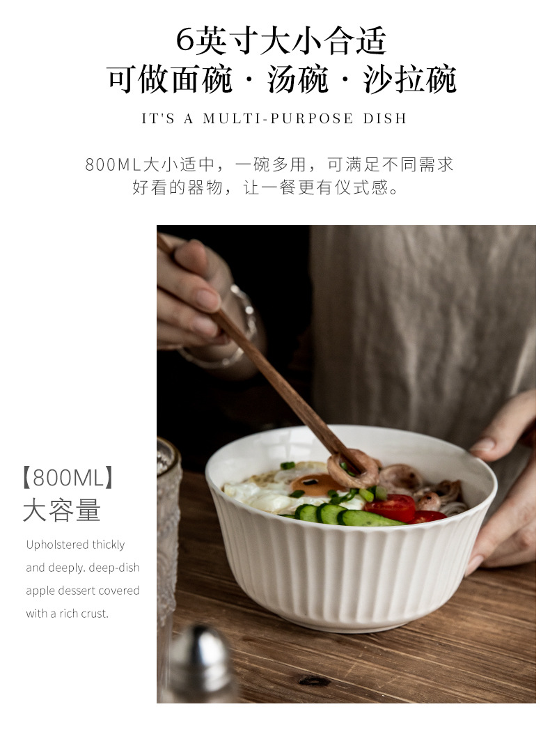 Tacos de fideos verticales de 6 pulgadas de cerámica en relieve, ensalada blanca, tazón de fideos de desayuno, exportación transfronteriza