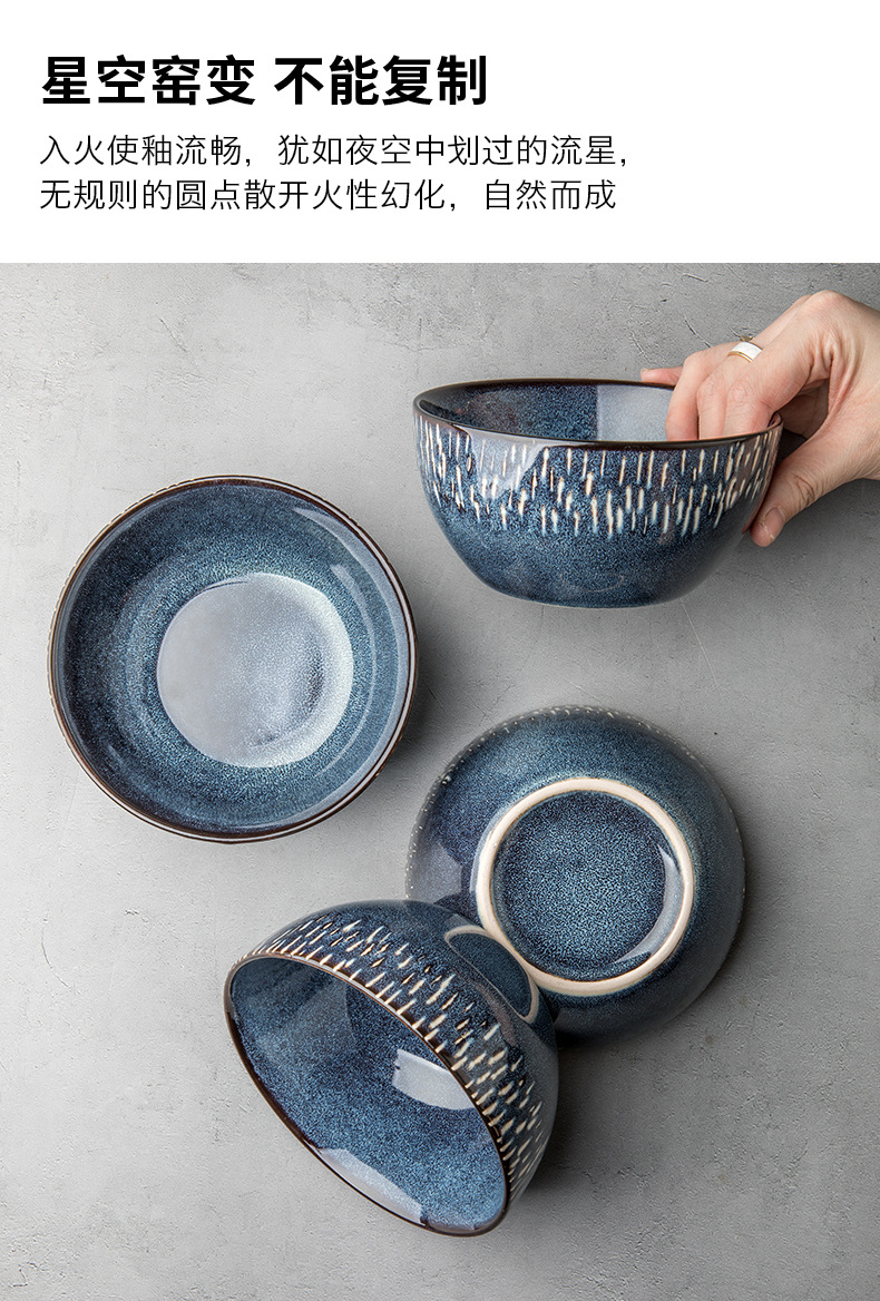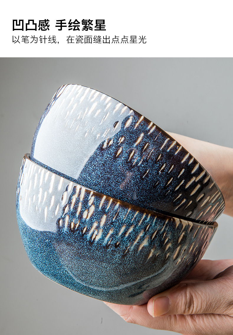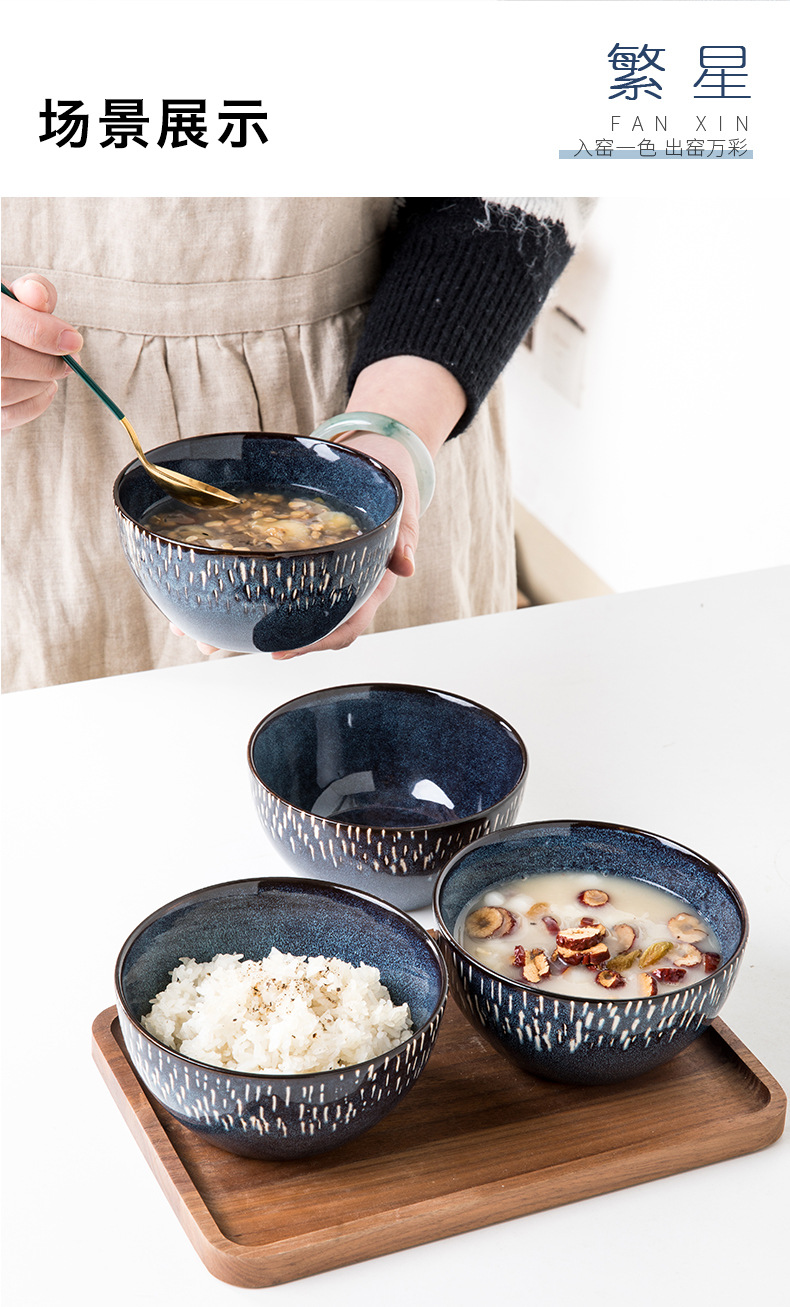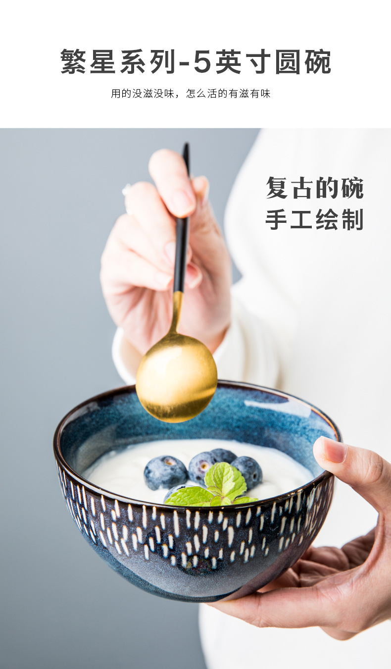 Tazón de cerámica vidriada de horno pintado a mano estrellado exportación de comercio exterior Tazón de arroz doméstico de 5 pulgadas Tazón de comida Tazón pequeño personalizado