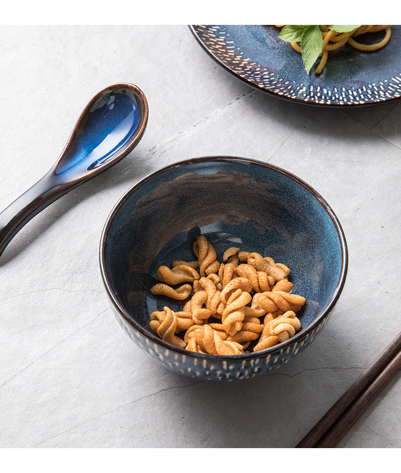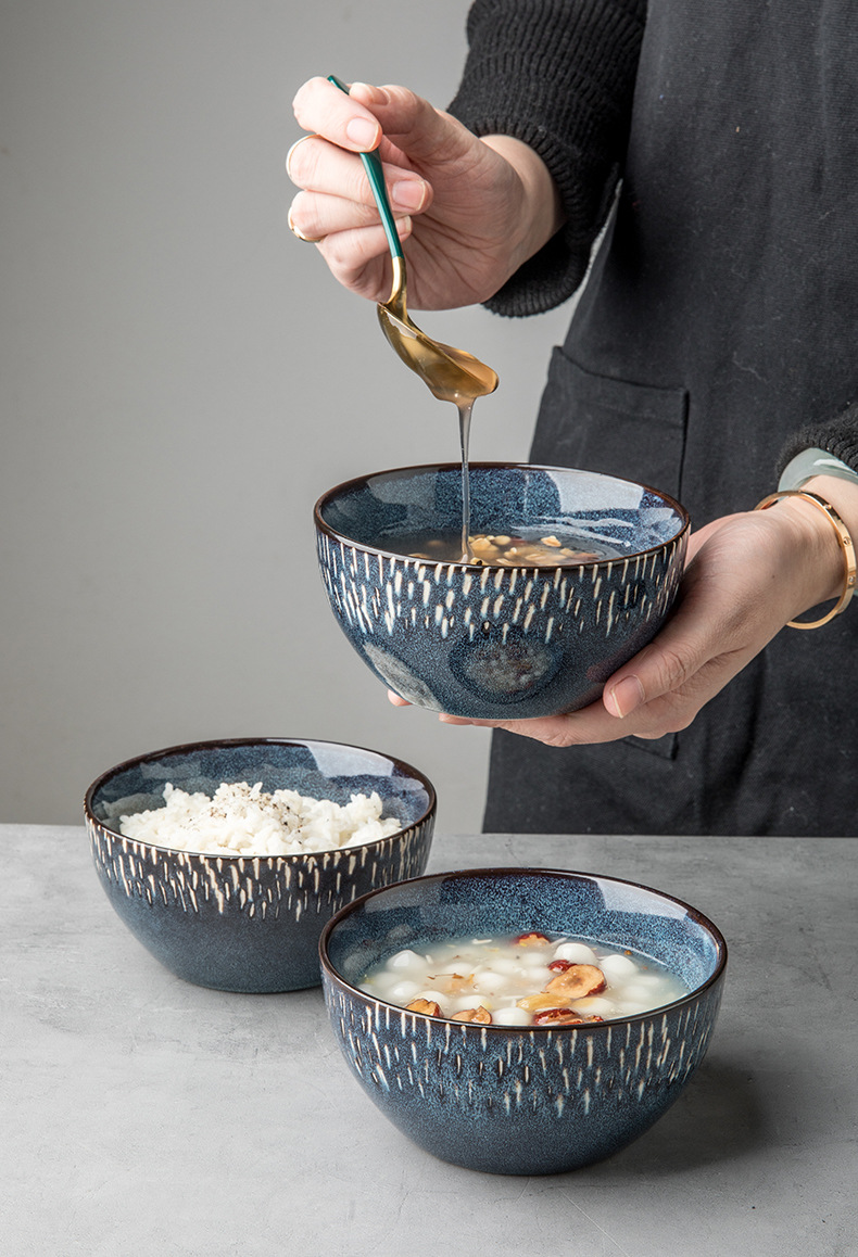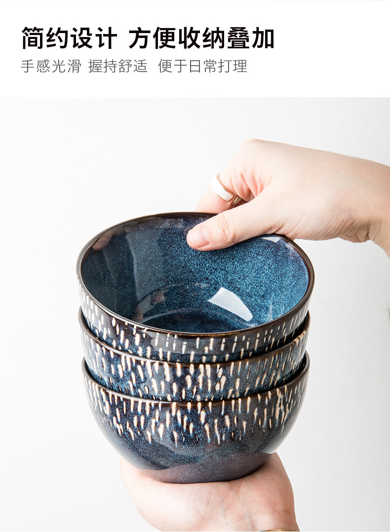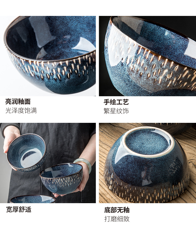 Tazón de cerámica vidriada de horno pintado a mano estrellado exportación de comercio exterior Tazón de arroz doméstico de 5 pulgadas Tazón de comida Tazón pequeño personalizado
