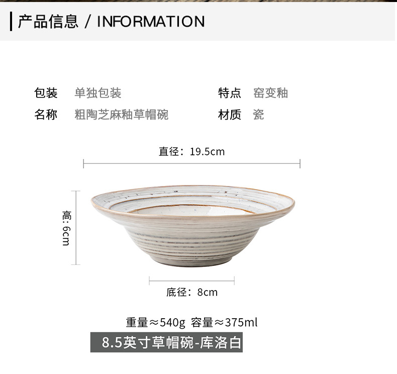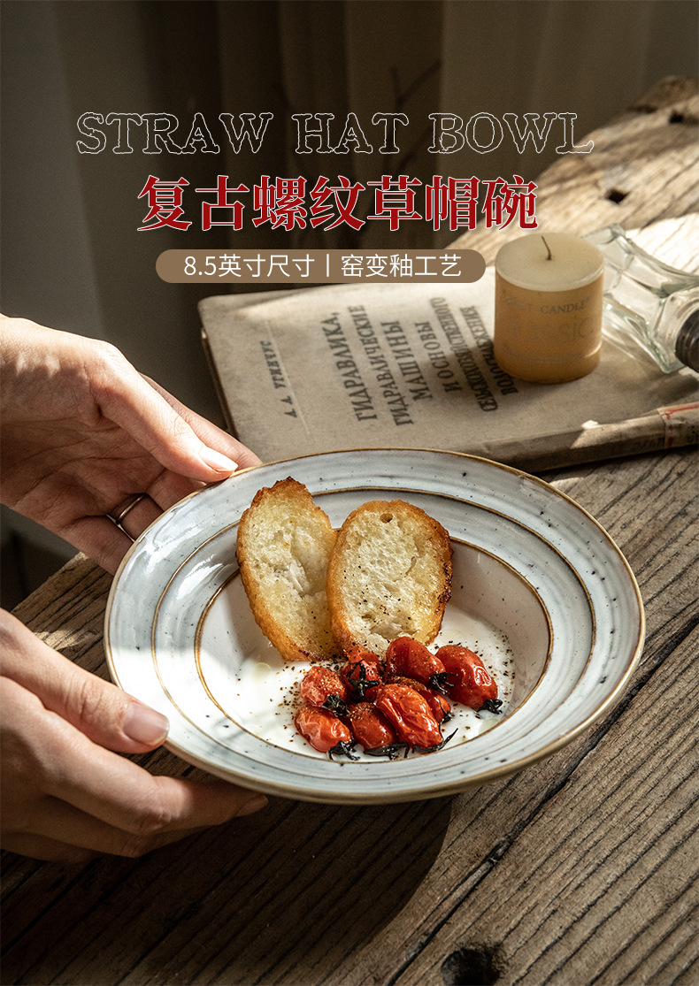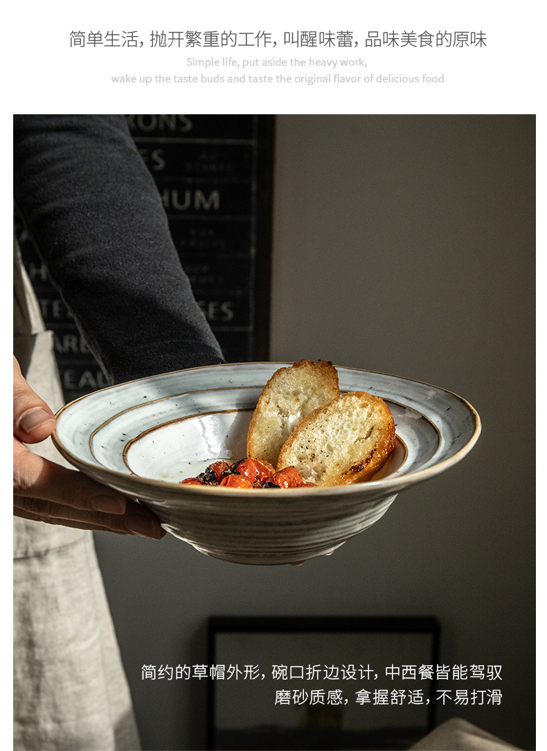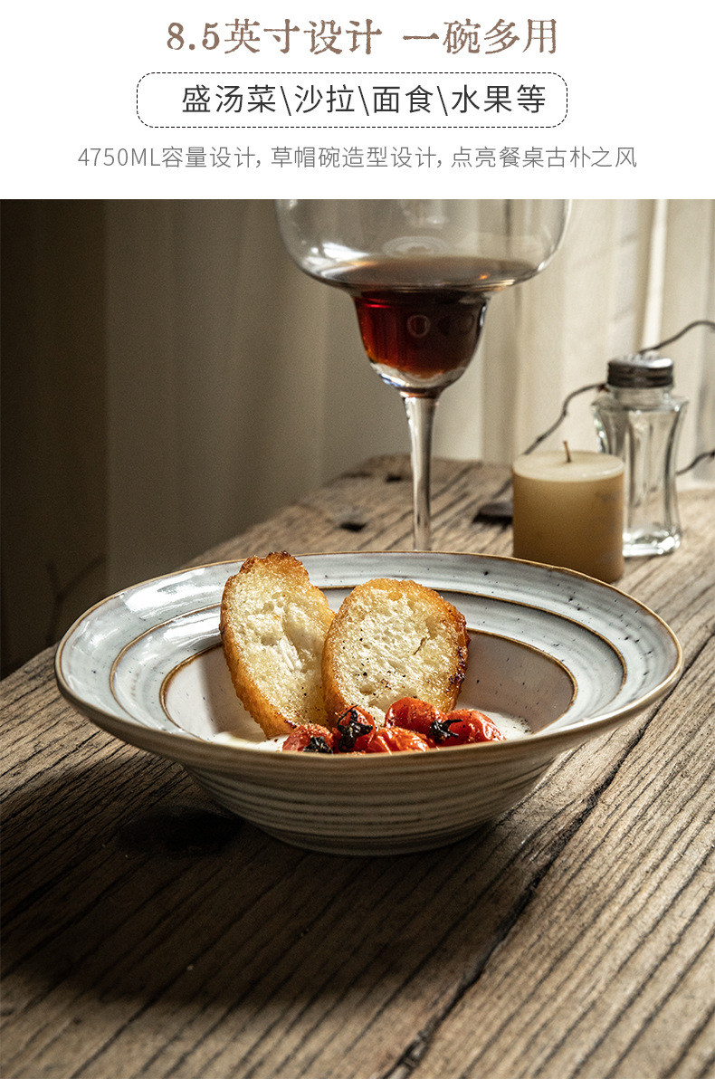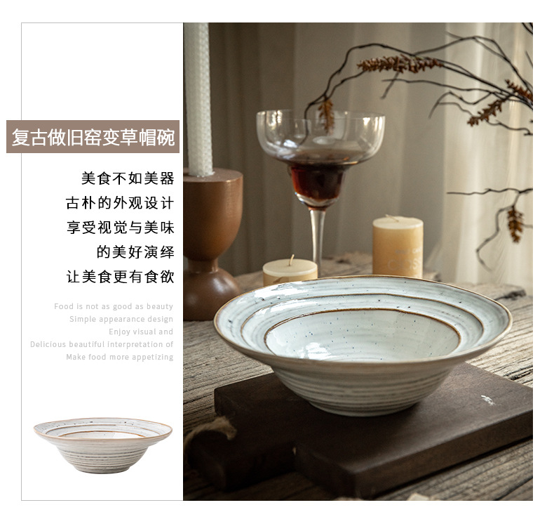 Exportaciones transfronterizas de 7,5 pulgadas irregulares sombrero de paja tazón roscado tazón de ensalada para hacer viejos tazones de cerámica americana retro