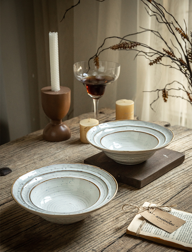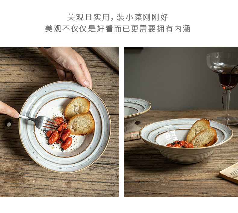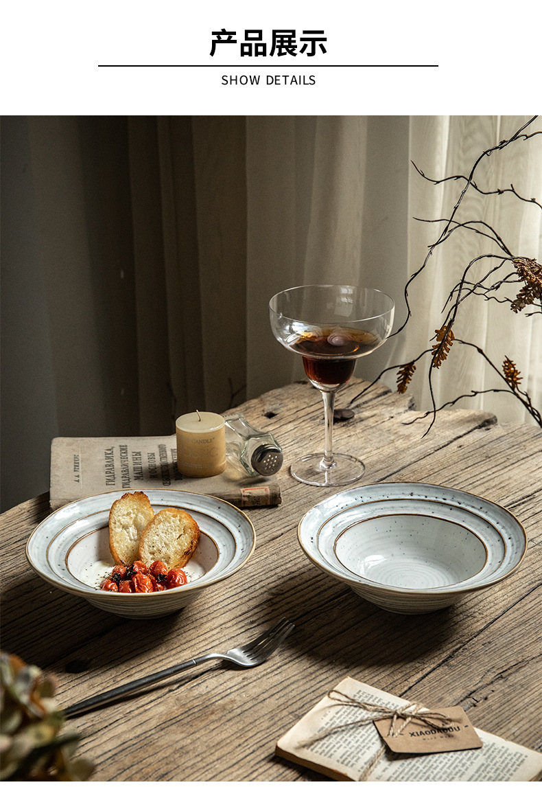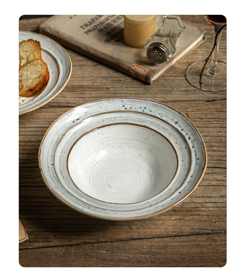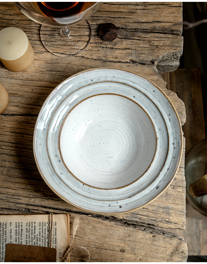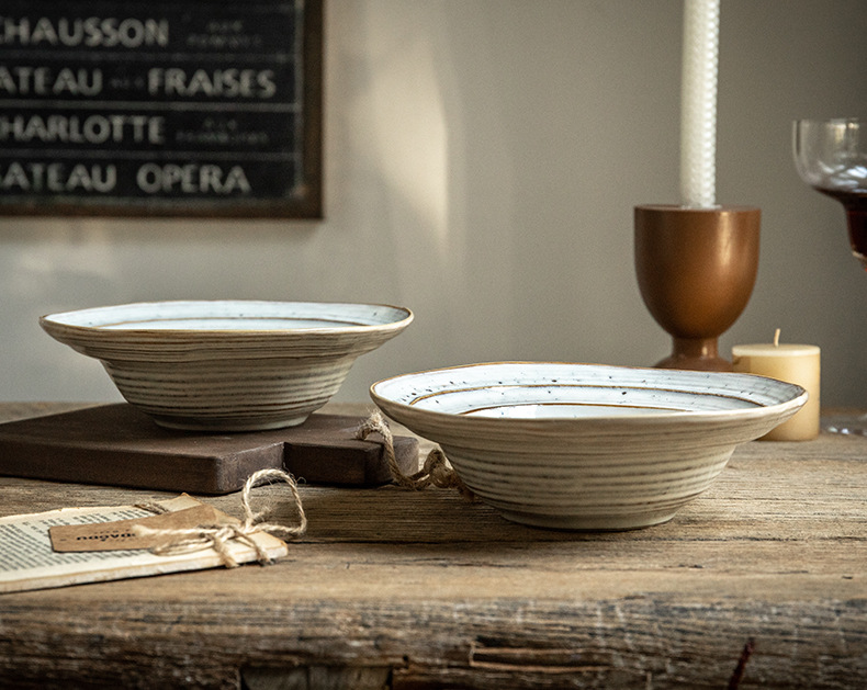 Exportaciones transfronterizas de 7,5 pulgadas irregulares sombrero de paja tazón roscado tazón de ensalada para hacer viejos tazones de cerámica americana retro